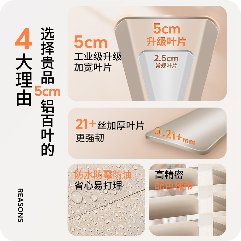贵品加宽铝合金百叶窗帘卫生间客厅书房办公室遮光遮阳帘升降卷帘