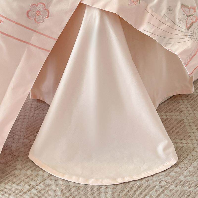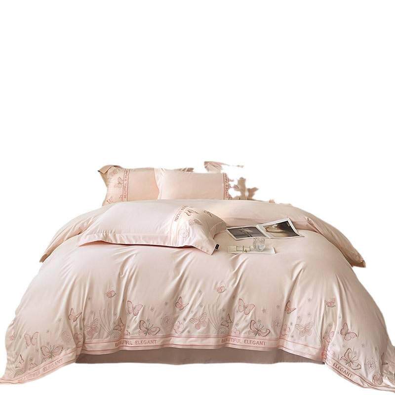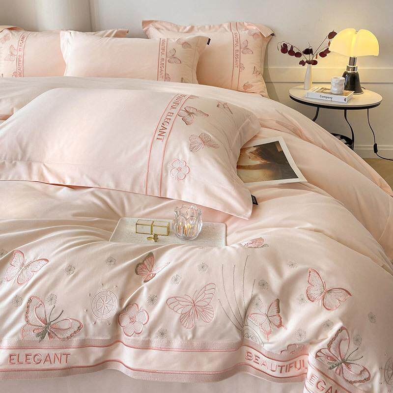 A类母婴级加厚纯棉磨毛四件套蝴蝶刺绣全棉被套少女心1.8床上用品