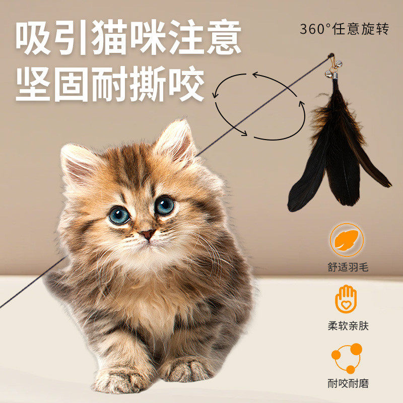 逗猫棒长杆猫玩具逗猫羽毛替换头幼猫小猫咪自嗨解闷神器钢丝消耗