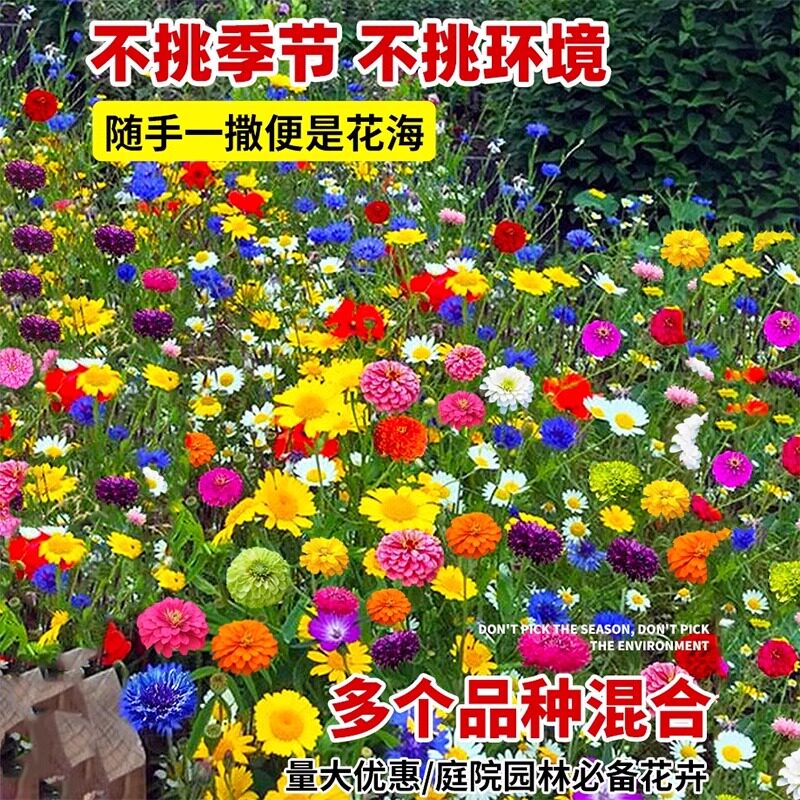 野花组合花种四季开花室外庭院格桑花种籽子百日草籽太阳花卉种子
