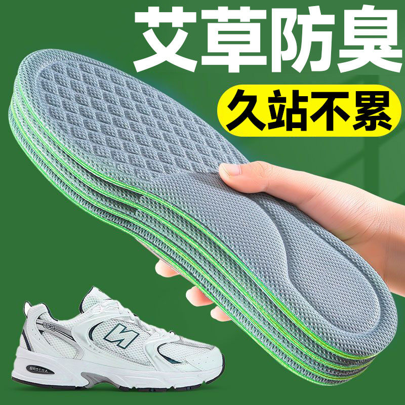 鞋垫男吸汗防臭艾草除臭鞋垫女吸汗透气软底舒适夏天网眼运动鞋垫