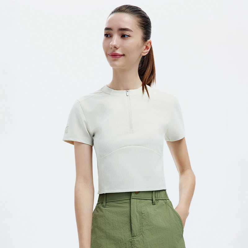 蕉下亨利衫女长袖T恤v领秋冬修身保暖低领打底衫半开领白色上衣