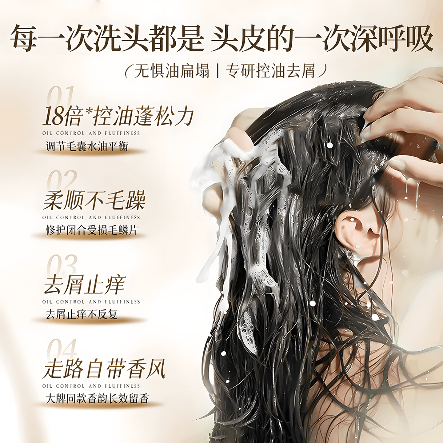 洗发水控油蓬松去屑止痒洗头膏露留香套装柔顺山茶花去油持久温和