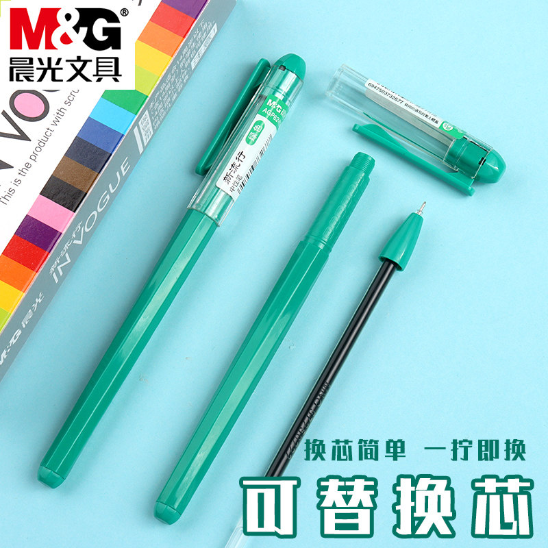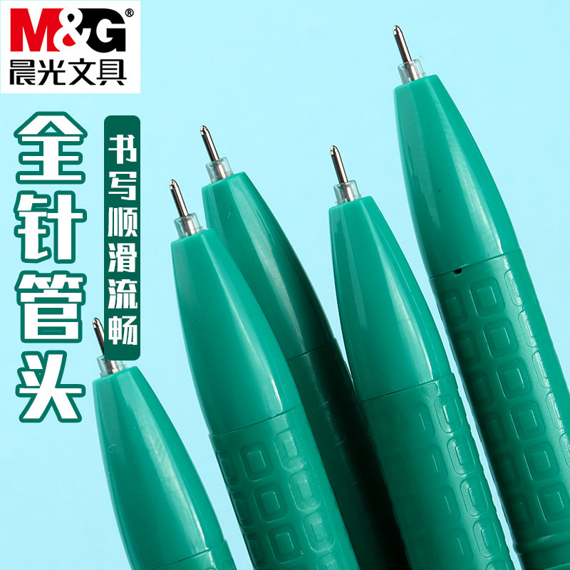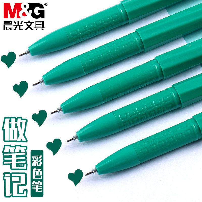 晨光新流行绿色中性笔学生用划重点做标记多色0.38mm全针管头做笔记专用绿色笔拔盖式彩色手账笔记号笔水笔
