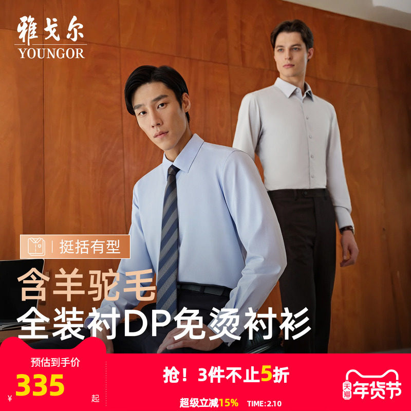 【羊驼毛TNDP】雅戈尔秋季新品商务休闲保暖免烫格纹长袖衬衫男