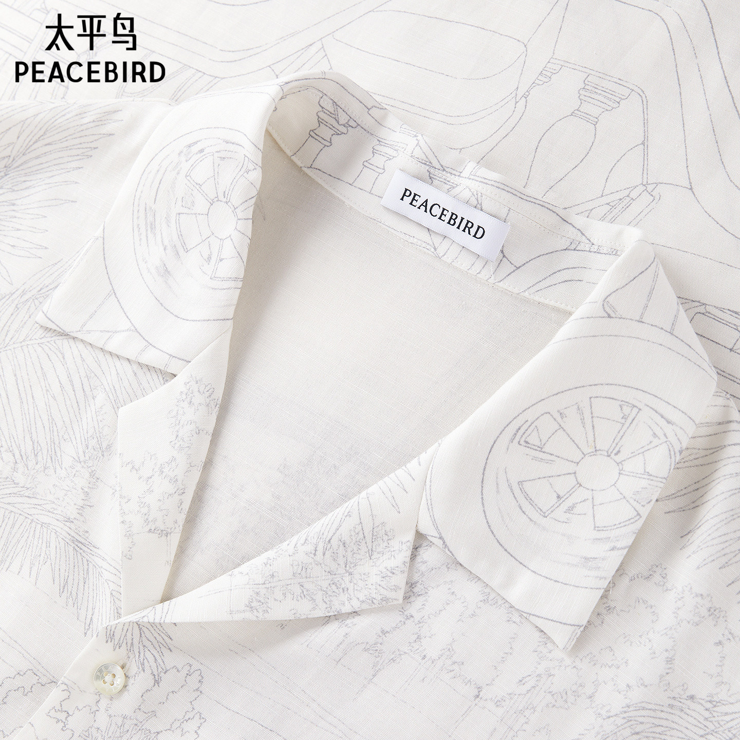 太平鸟男装莱赛尔衬衫夏新款满印花上衣B1CJE25