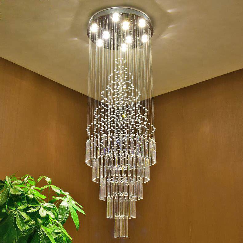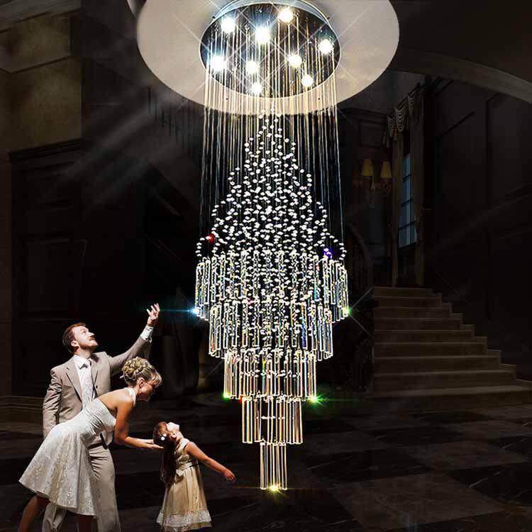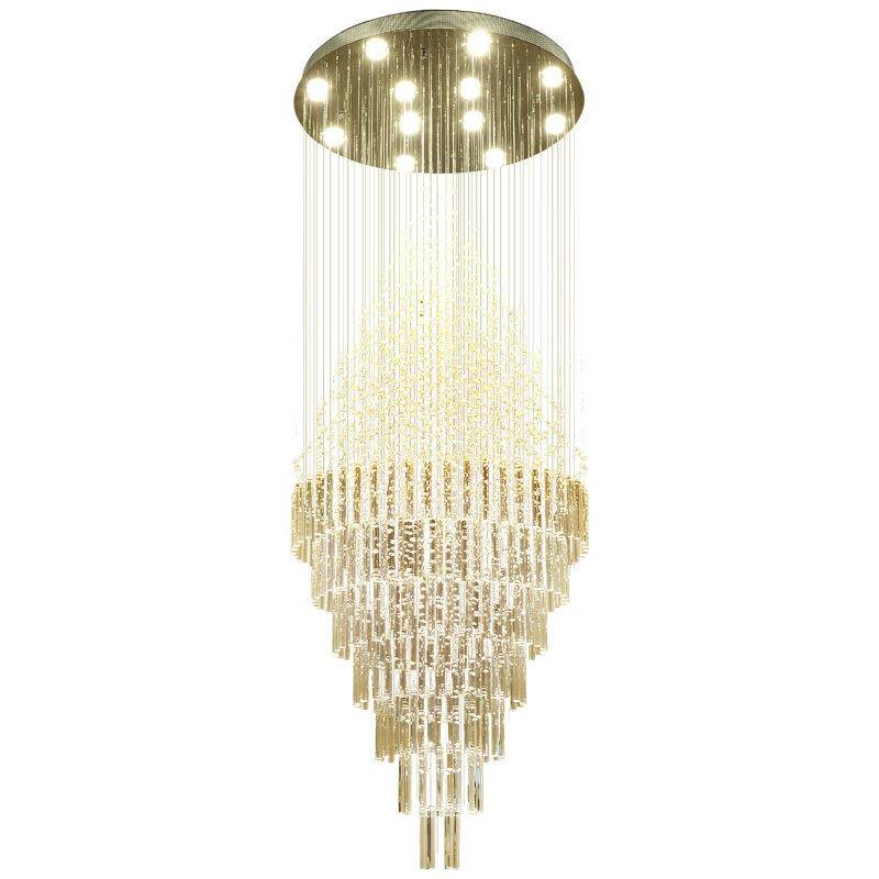 法式轻奢圆形别墅复式楼中空水晶大长吊灯客厅大厅楼梯灯简约灯具