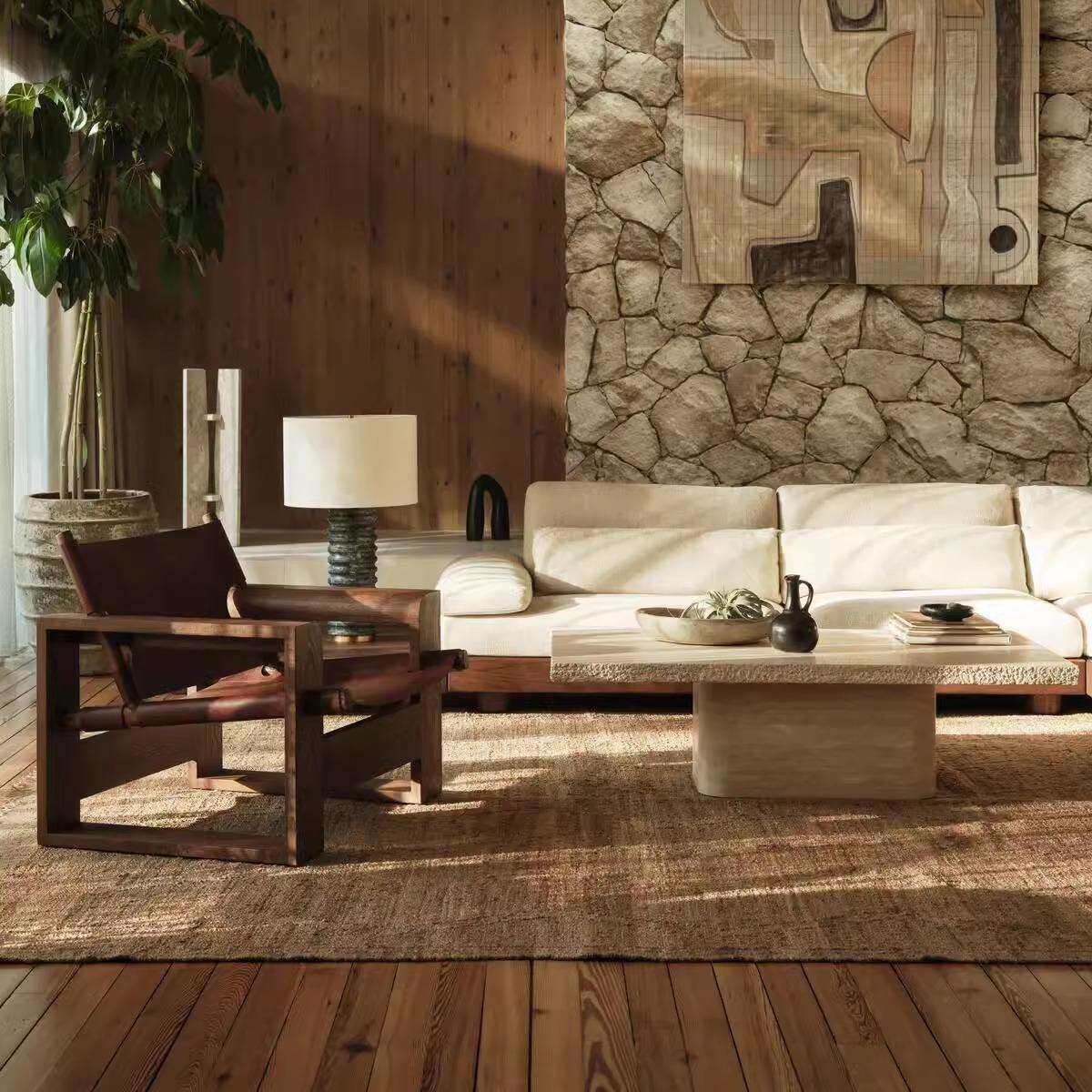 新中式客厅实木布艺沙发北欧简约设计师酒店样板间民宿双三人沙发