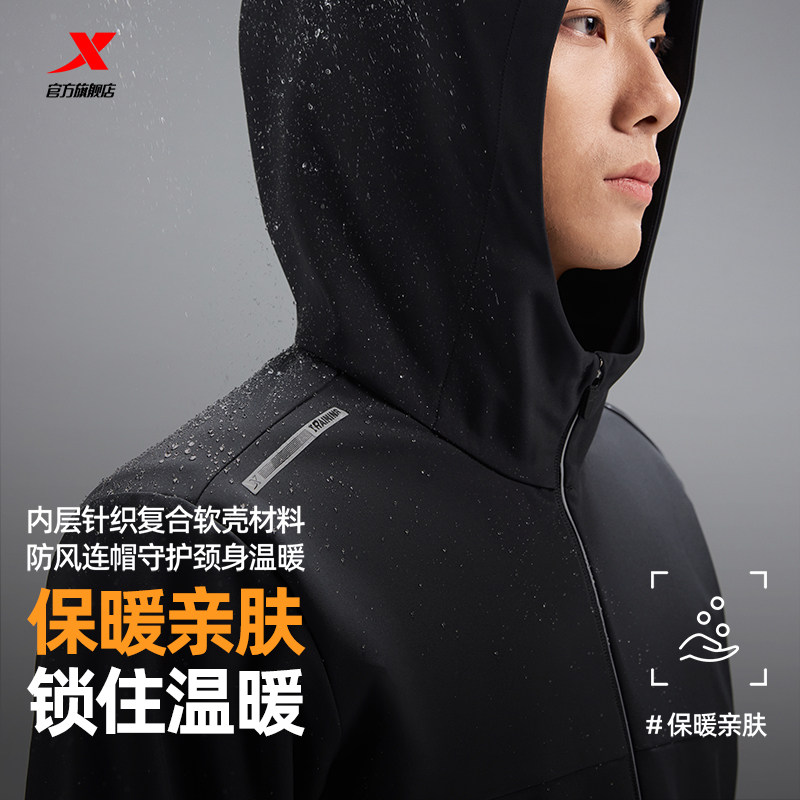 特步软壳衣男2025年秋冬新款训练薄款夹克风衣健身上衣运动外套男