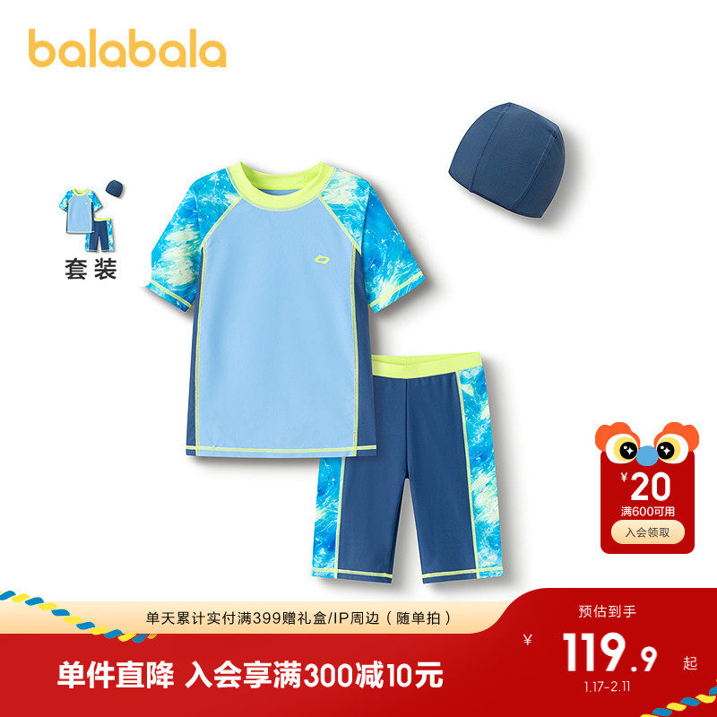 巴拉巴拉儿童连体泳衣男童泳装大童防晒耐氯泡温泉潮