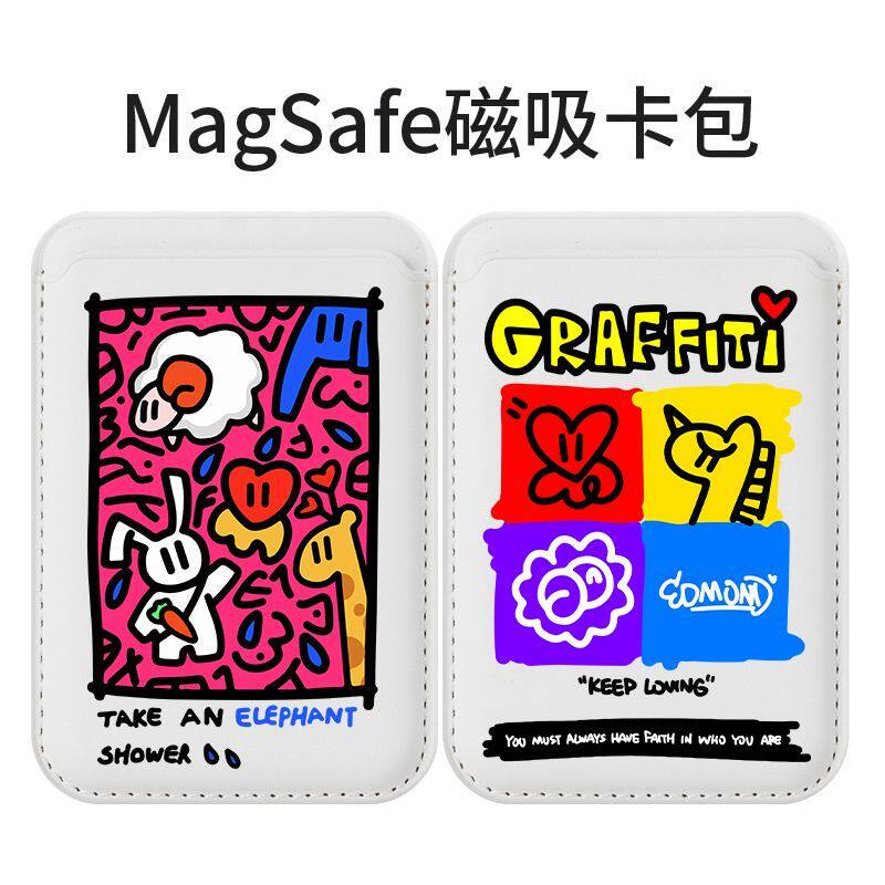 插画简约原宿磁吸卡套适用iPhone苹果magsafe背贴证件饭卡套卡槽6定制