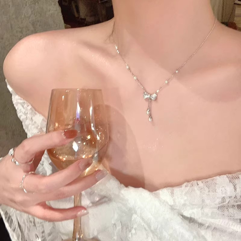 周大生流苏蝴蝶结纯银项链女S925锁骨链小众设计感送女友生日礼物