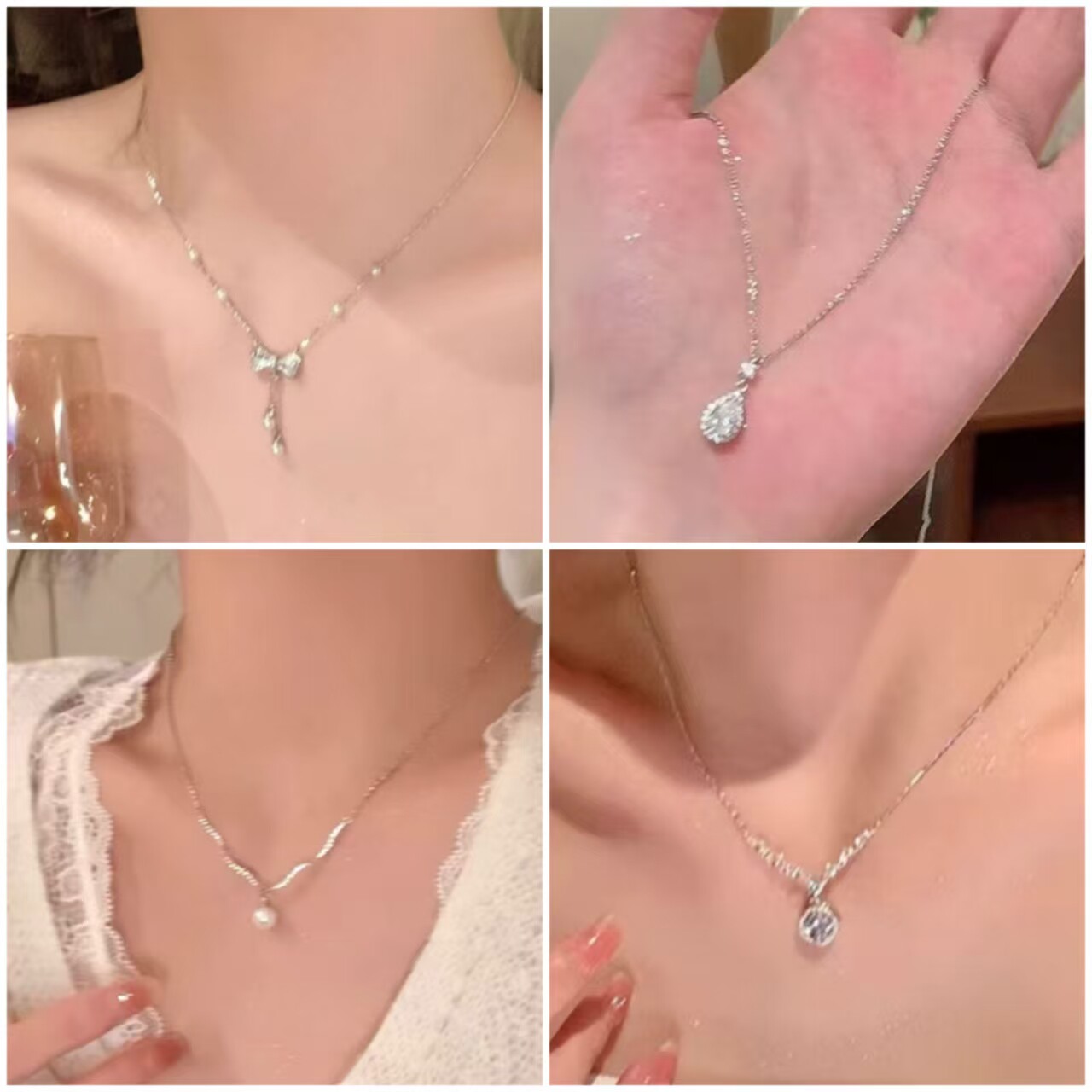 时尚女款简约爆闪锆石方糖项链配饰女轻奢小众高级感锁骨链颈链