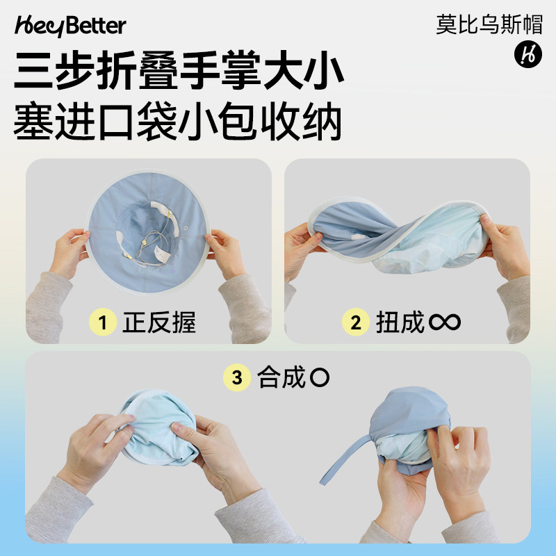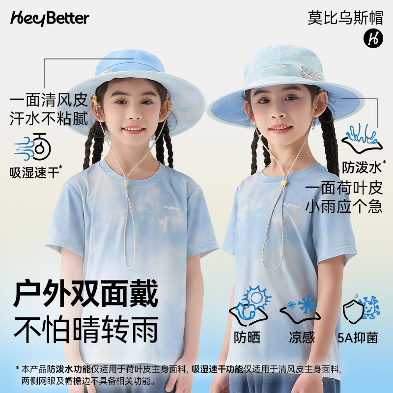 HeyBetter儿童防晒帽莫比乌斯帽可折叠遮阳帽渔夫帽户外遮阳帽子