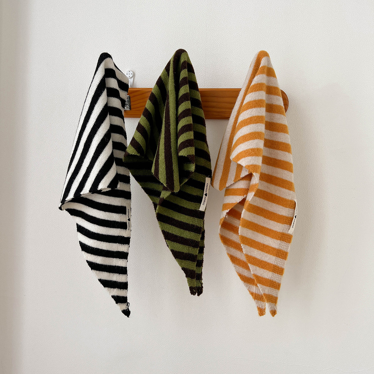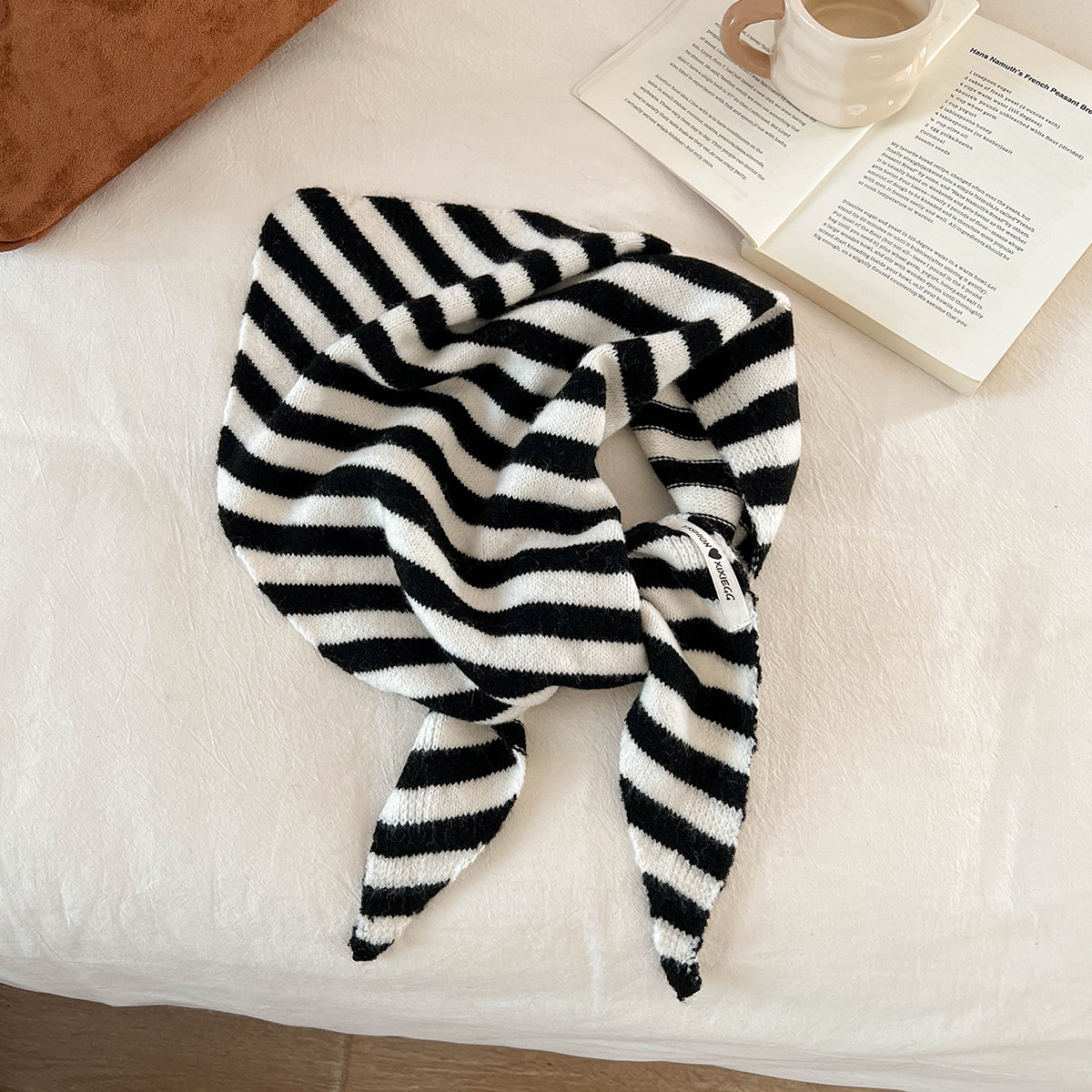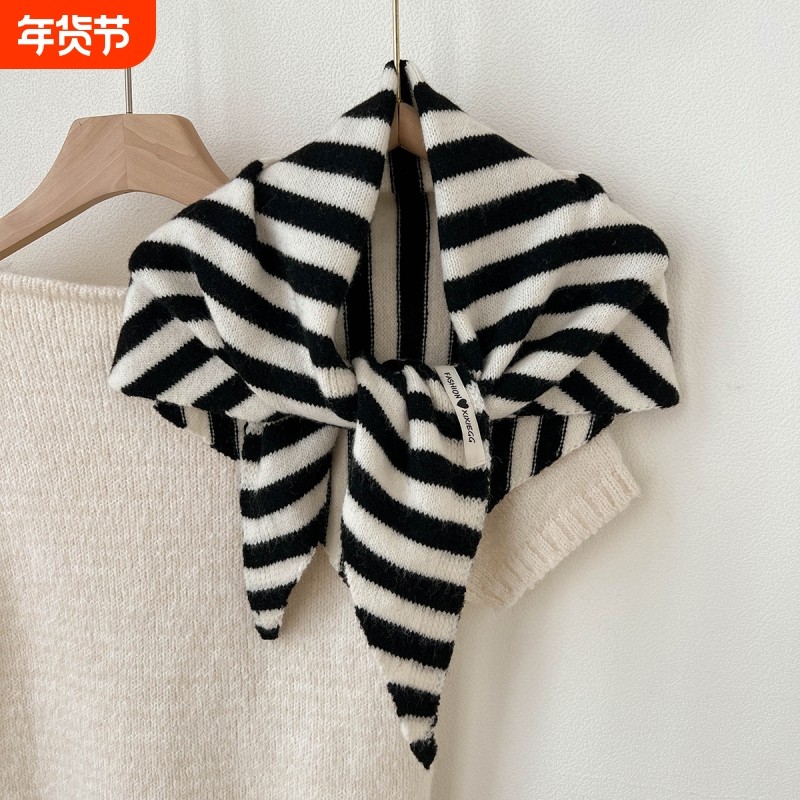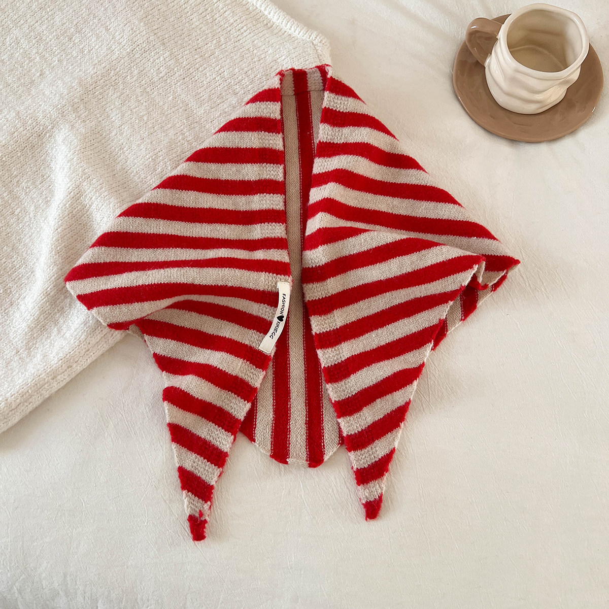 小条纹三角巾披肩外搭女春秋冬季保暖三角围巾围脖红色黑色咖色