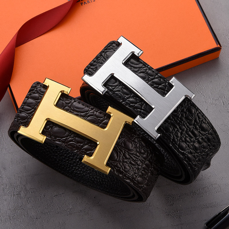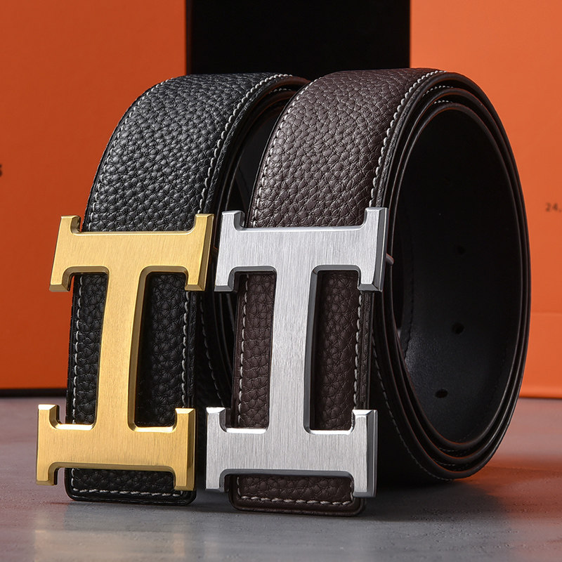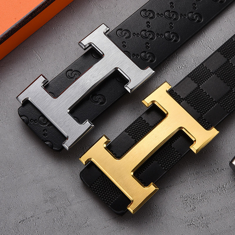 爱马男仕皮带男士真皮H字母平滑扣简约百搭牛仔裤带商务头层野牛