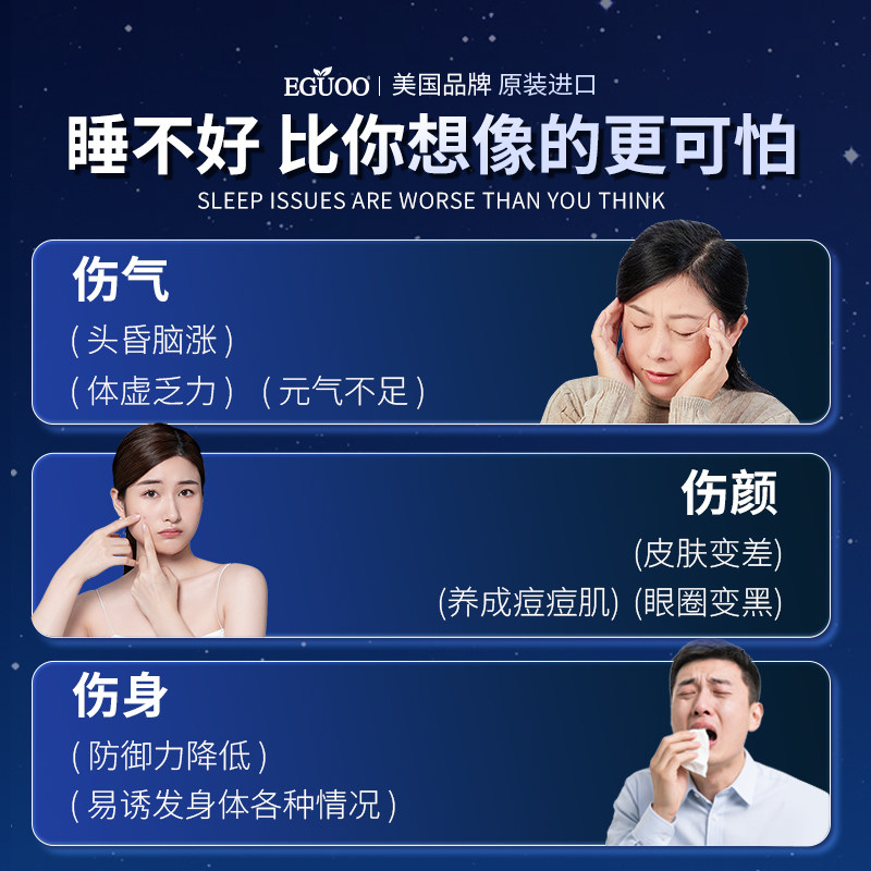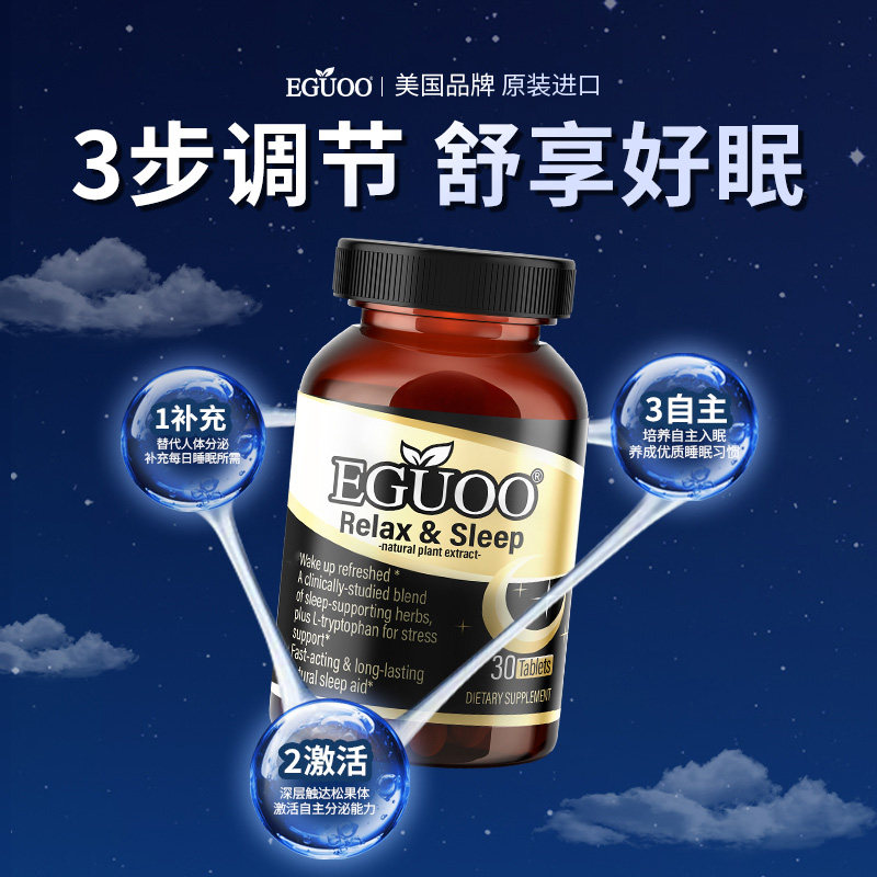 EGUOO原装进口复合植物舒压安眠gaba助眠褪黑素舒缓睡眠片入眠旧k