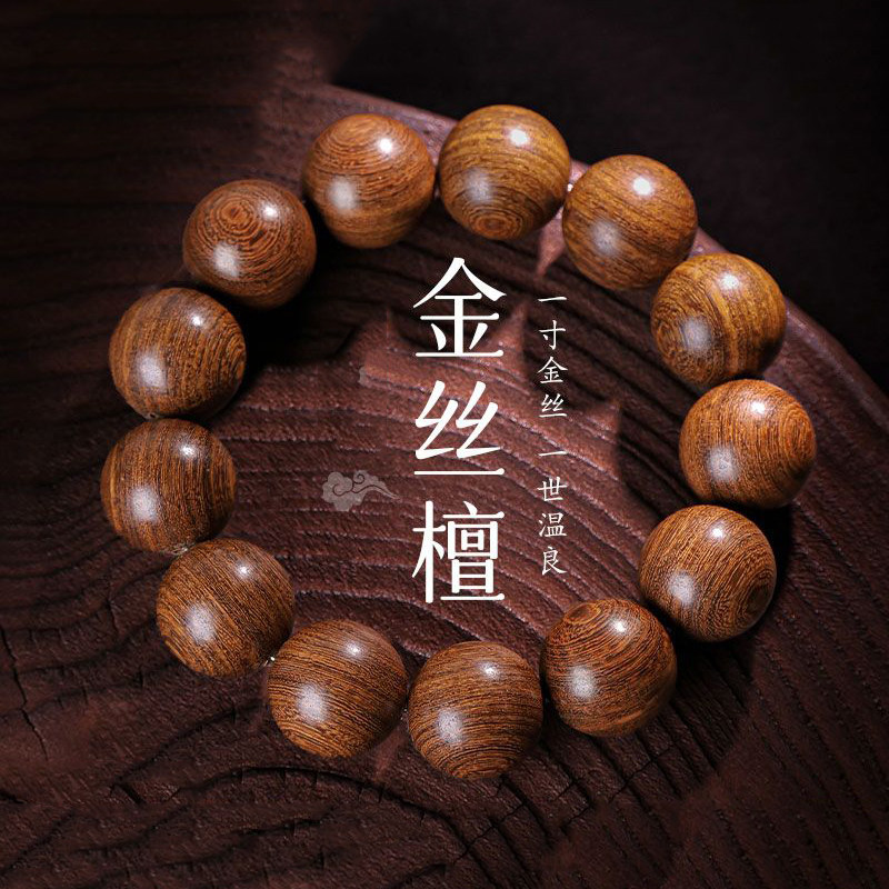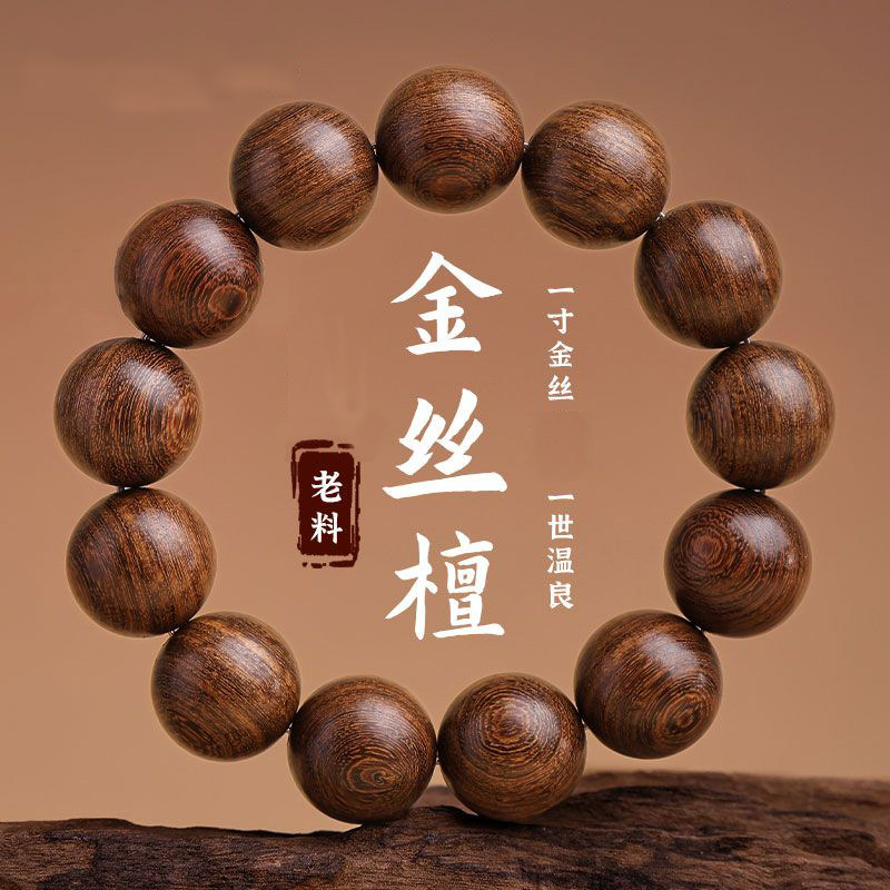 顺纹理原木老料金丝檀手串天然木质盘玩珠串男士情侣手链女念珠