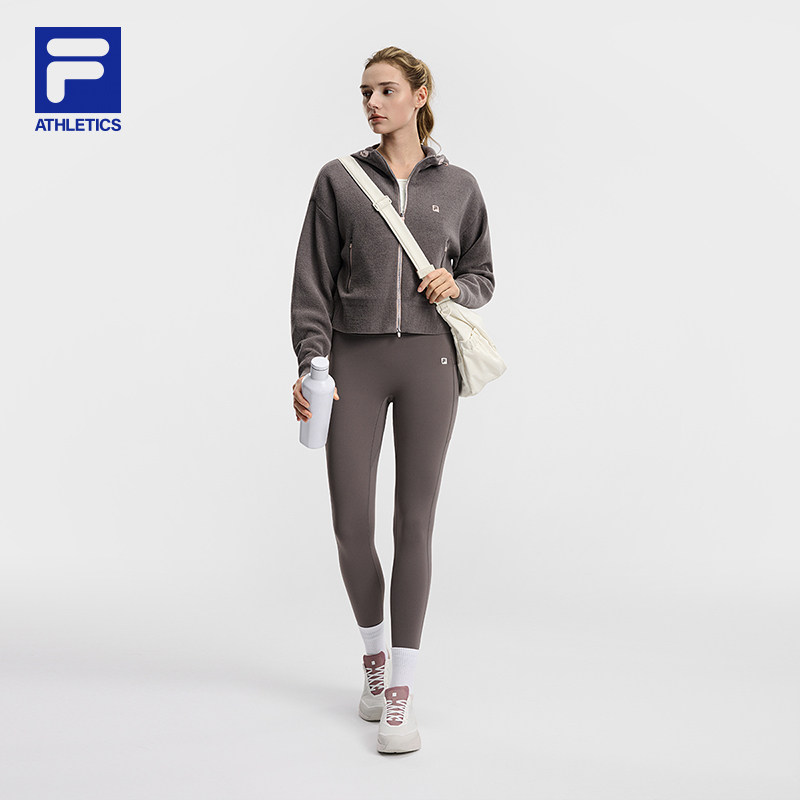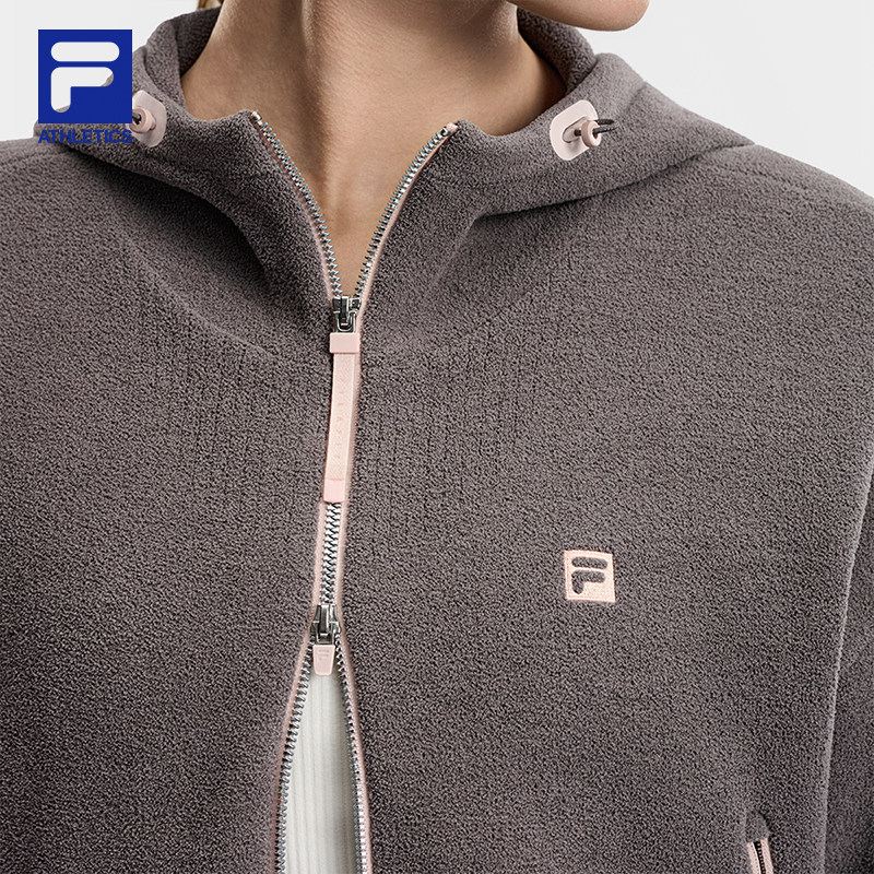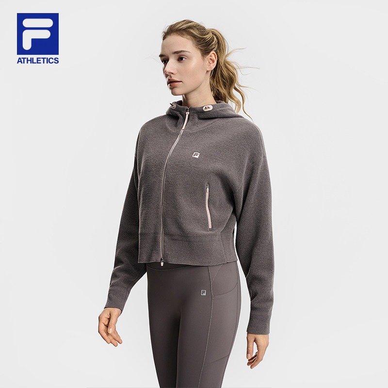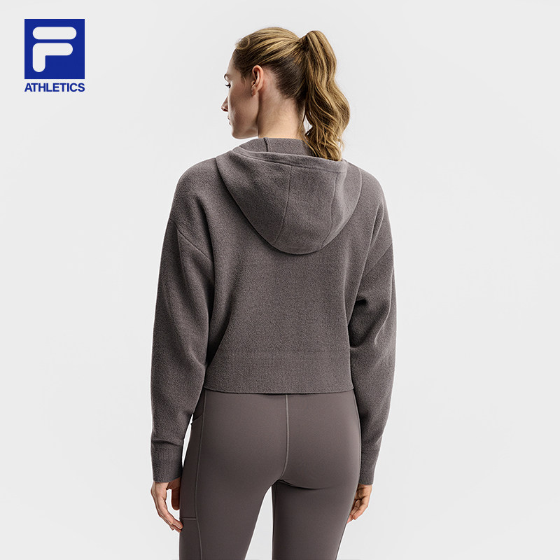 FILA 斐乐官方女士编织外套2026春新款健身运动宽松连帽毛衣外套