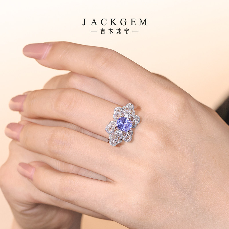 【夏花】尖晶石戒指真钻石戒指紫宝石戒指宝石彩宝戒指珠宝首饰E7