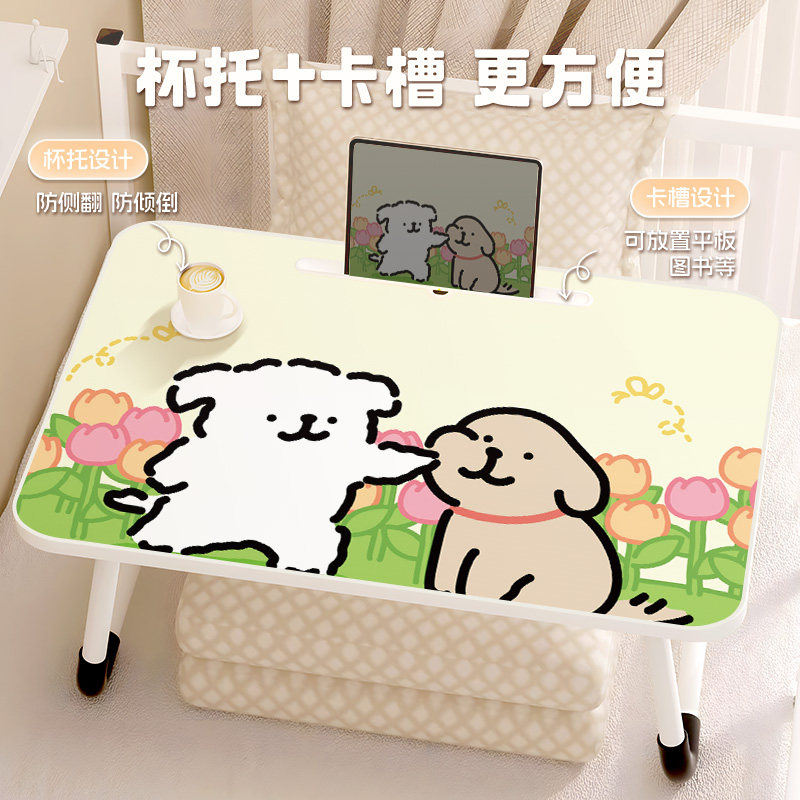 线条小狗床上小桌子学生宿舍学习桌可折叠电脑桌家用飘窗书桌坐地桌学习小桌板办公笔记本膝上桌懒人上铺神器