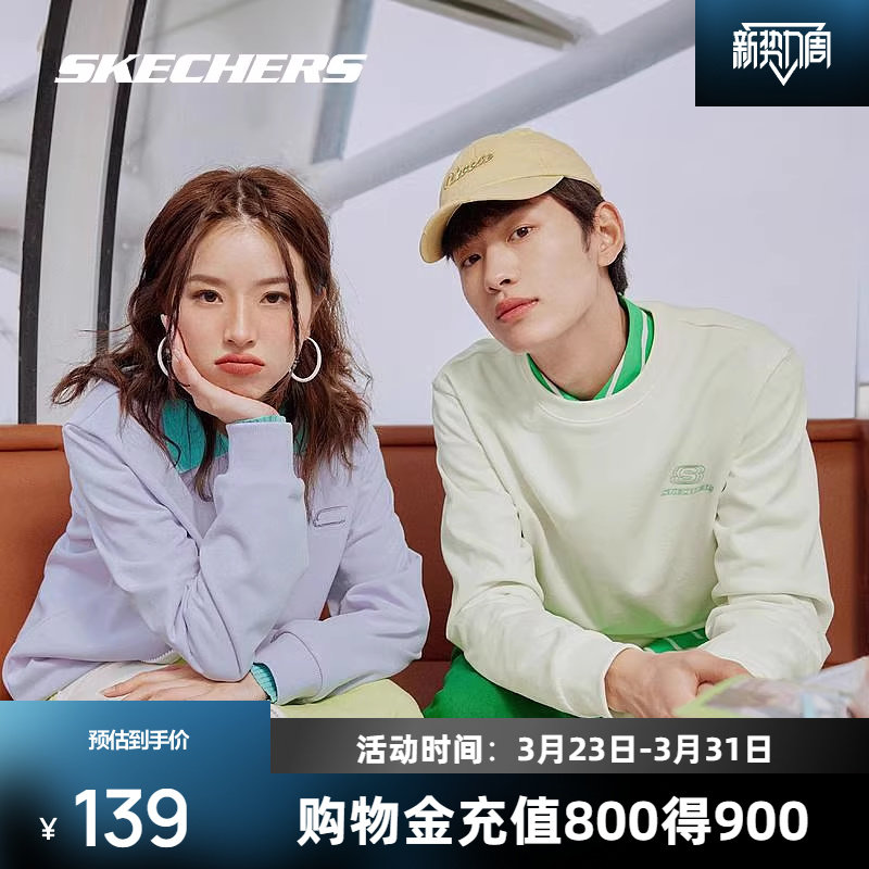 斯凯奇男女款情侣卫衣柔软舒适圆领美式时尚潮流百搭多巴胺套头衫