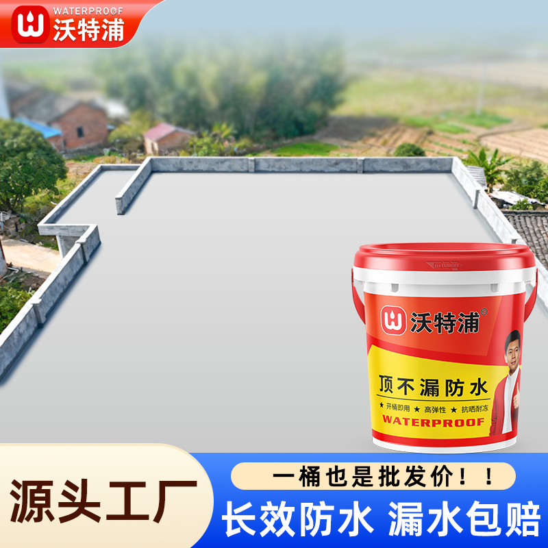沃特浦顶不漏防水涂料屋顶防水胶补漏裂缝渗水外墙房顶专用材料王