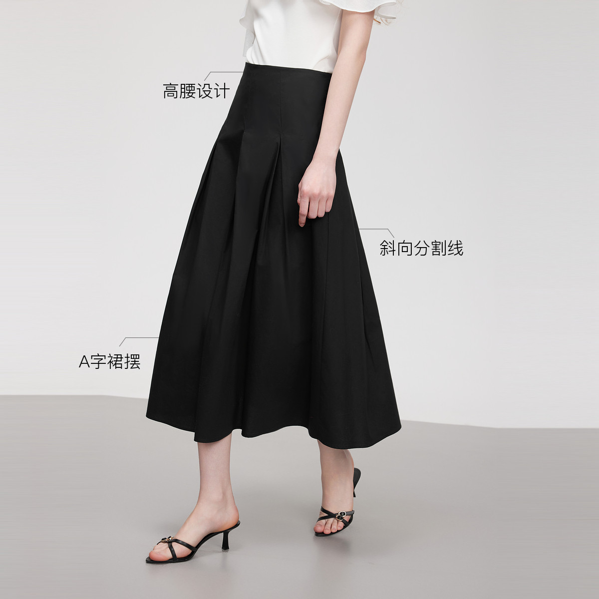 商场同款森马半身裙女磨毛纯棉长裙2025秋新款纯色伞裙百搭20002