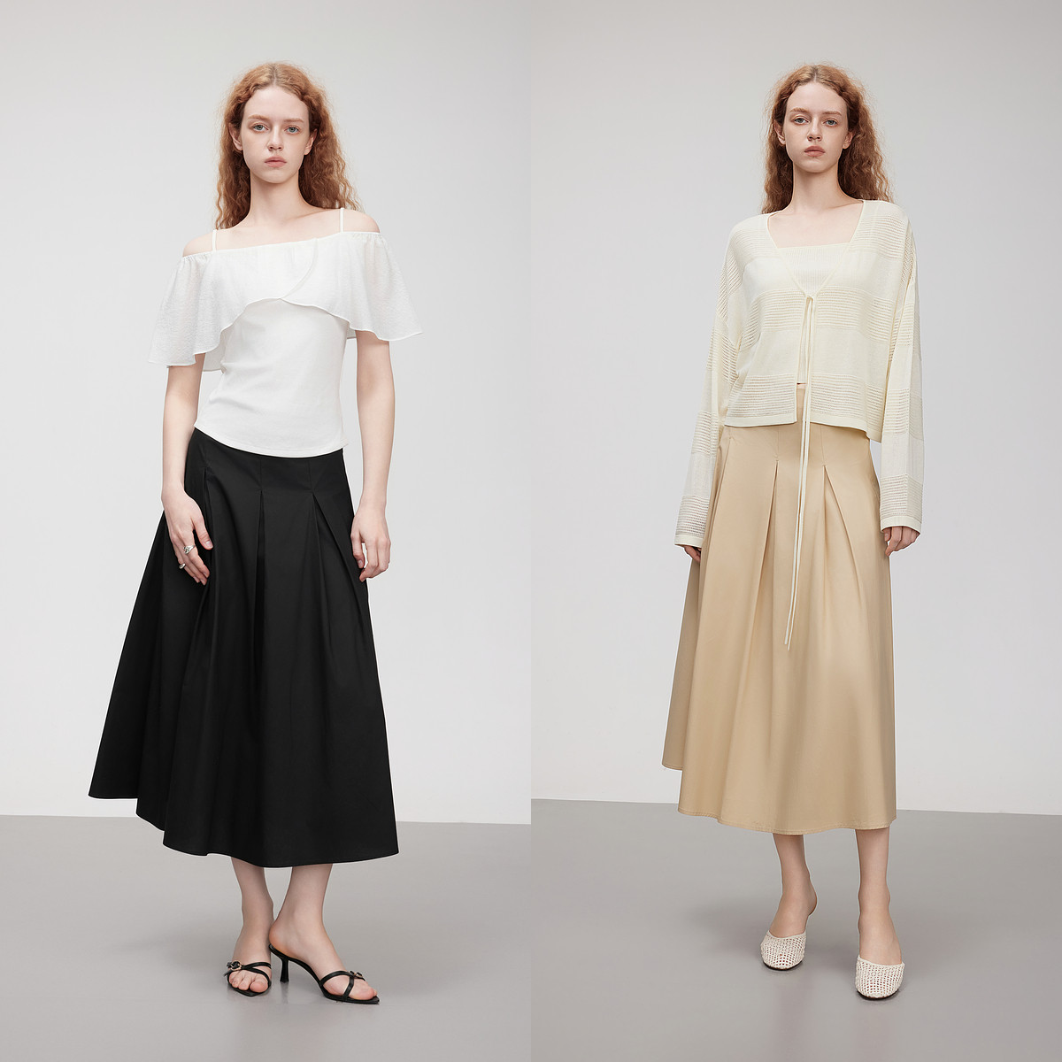 LIMONN |秋冬多颜色经典高腰显腿长A字百褶半身裙长裙