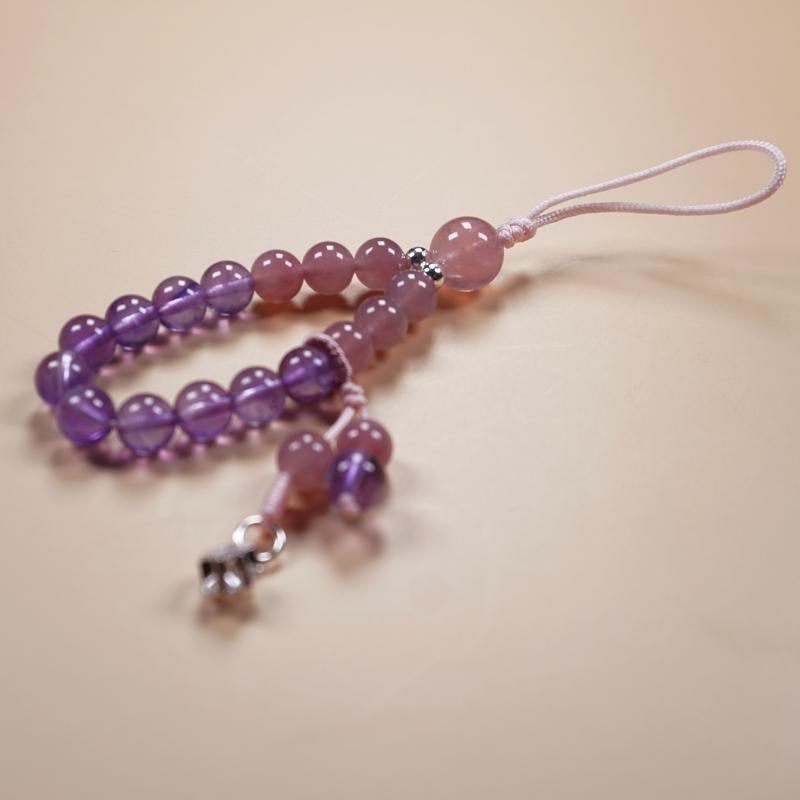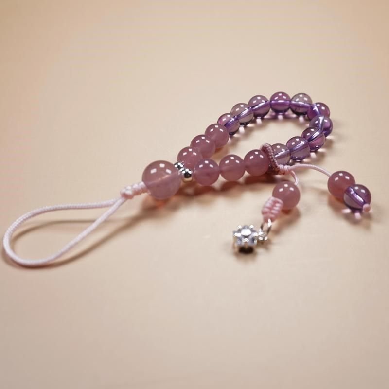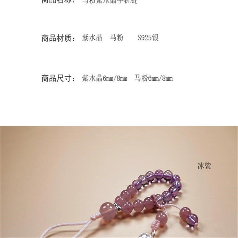 天然紫水晶手机链女短款银饰小挂件甜美粉水晶挂绳手工编织指环扣