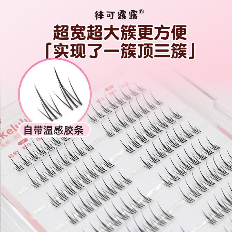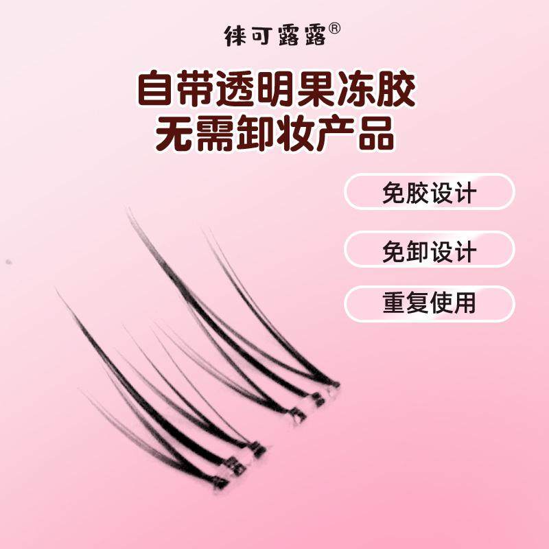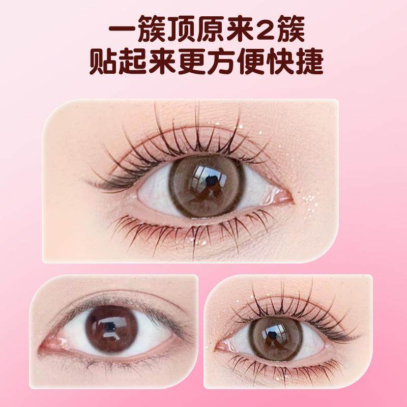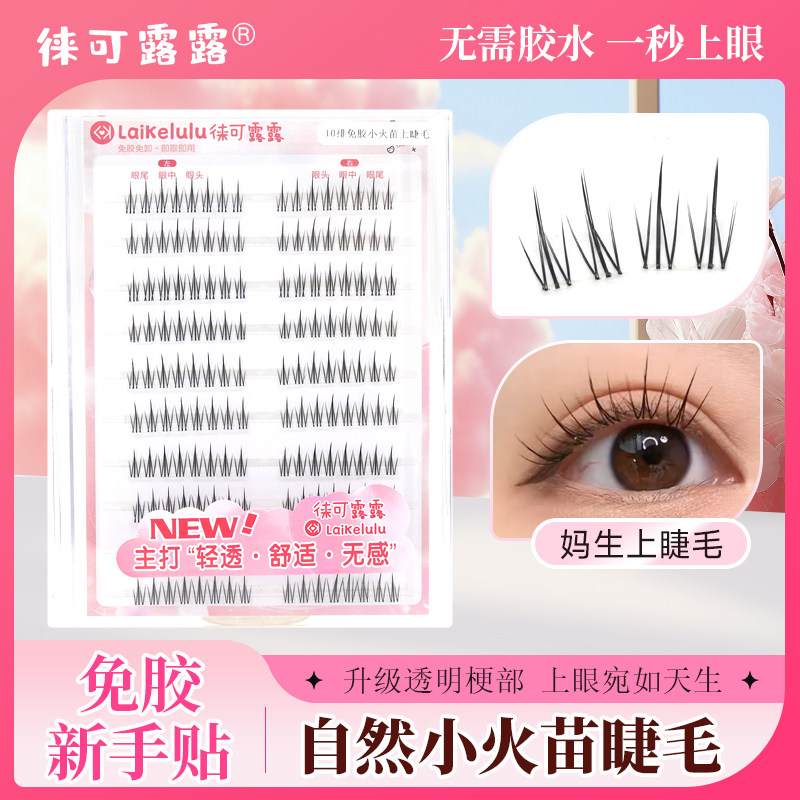 双尖小火苗假睫毛免胶女 自然仿真淡妆通勤分段式懒人自粘透明梗