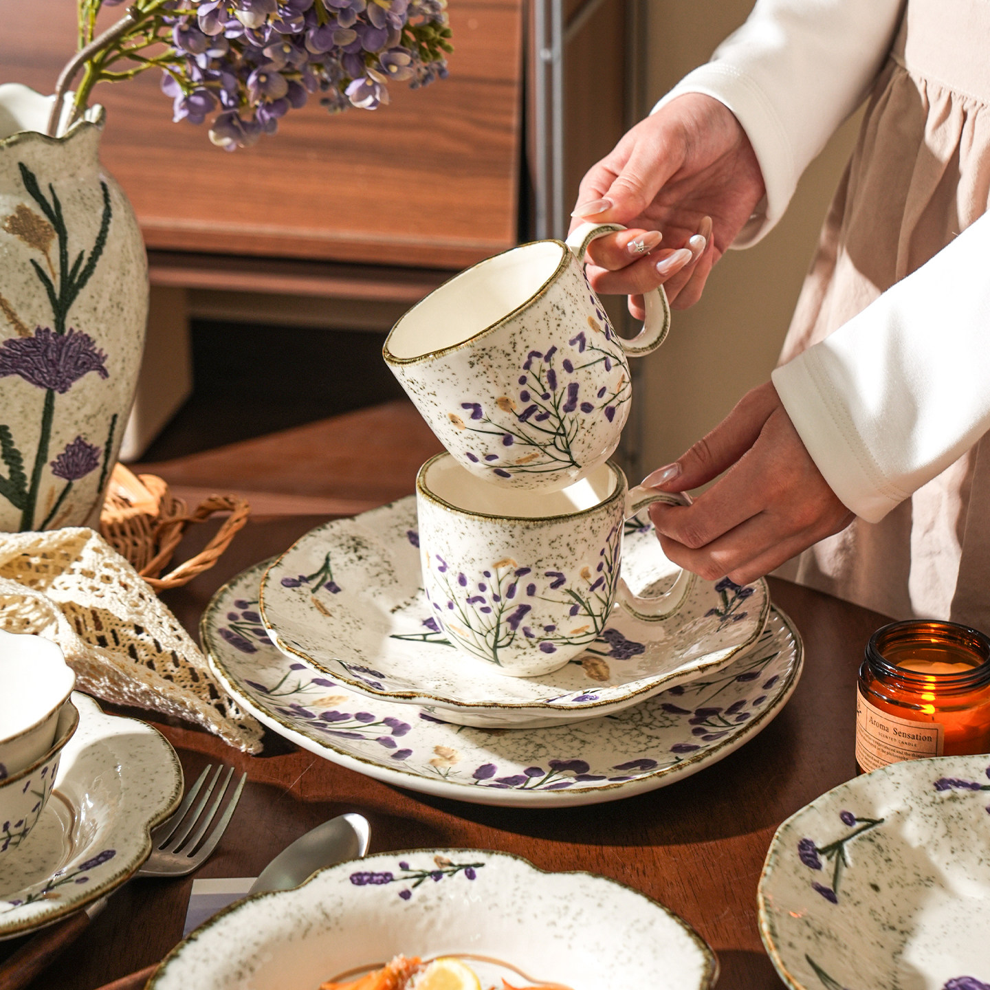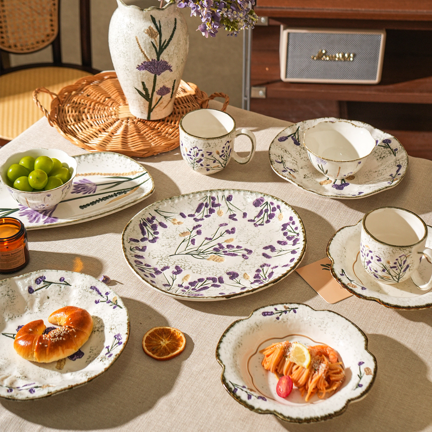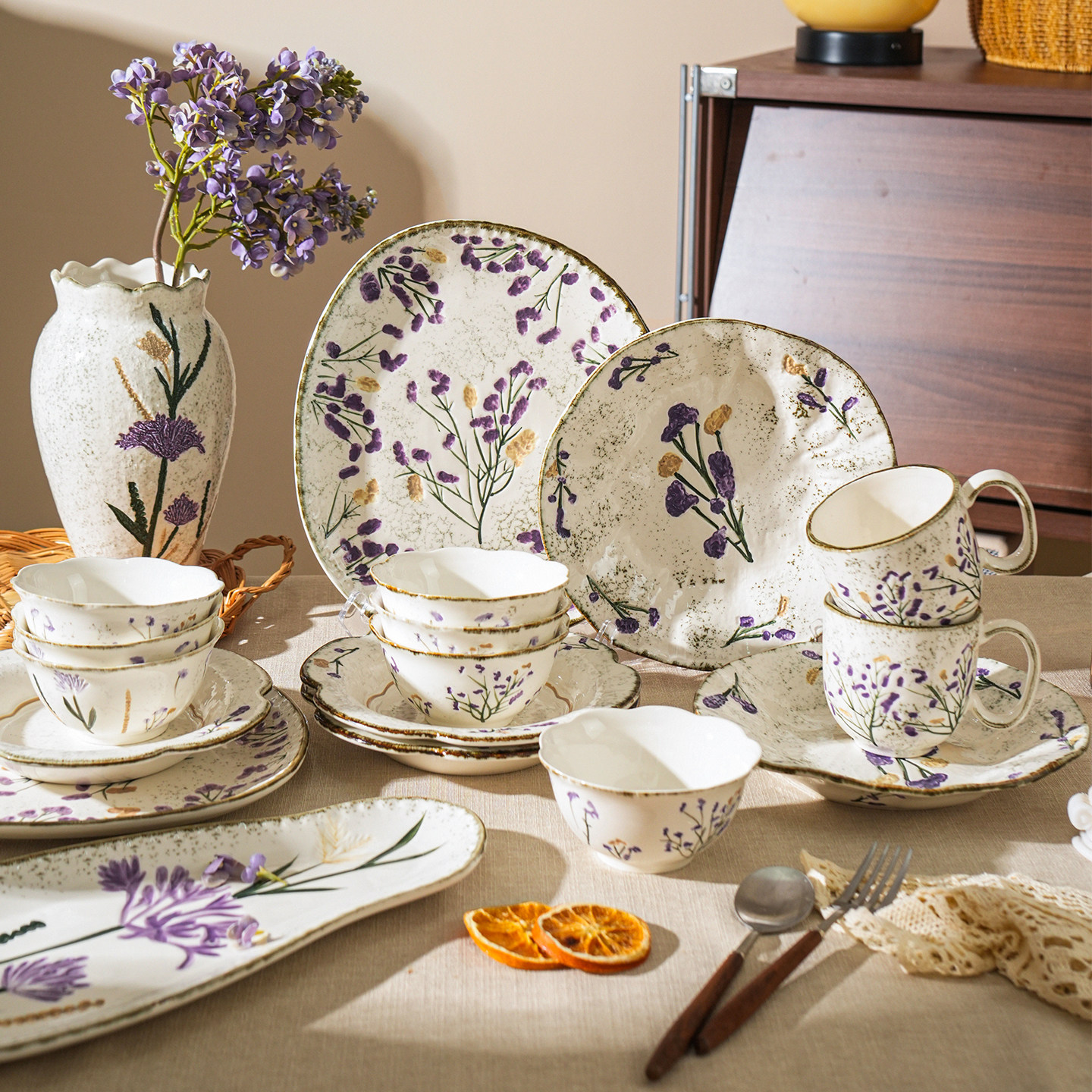 舍里法式薰衣草陶瓷碗碟套装家用高档碗盘餐具高颜值米饭碗西餐盘