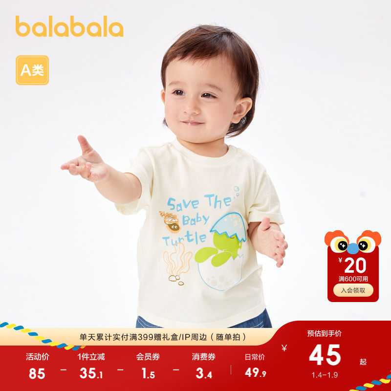 巴拉巴拉婴儿t恤宝宝上衣男童衣服儿童短袖夏装趣味印花可爱萌趣