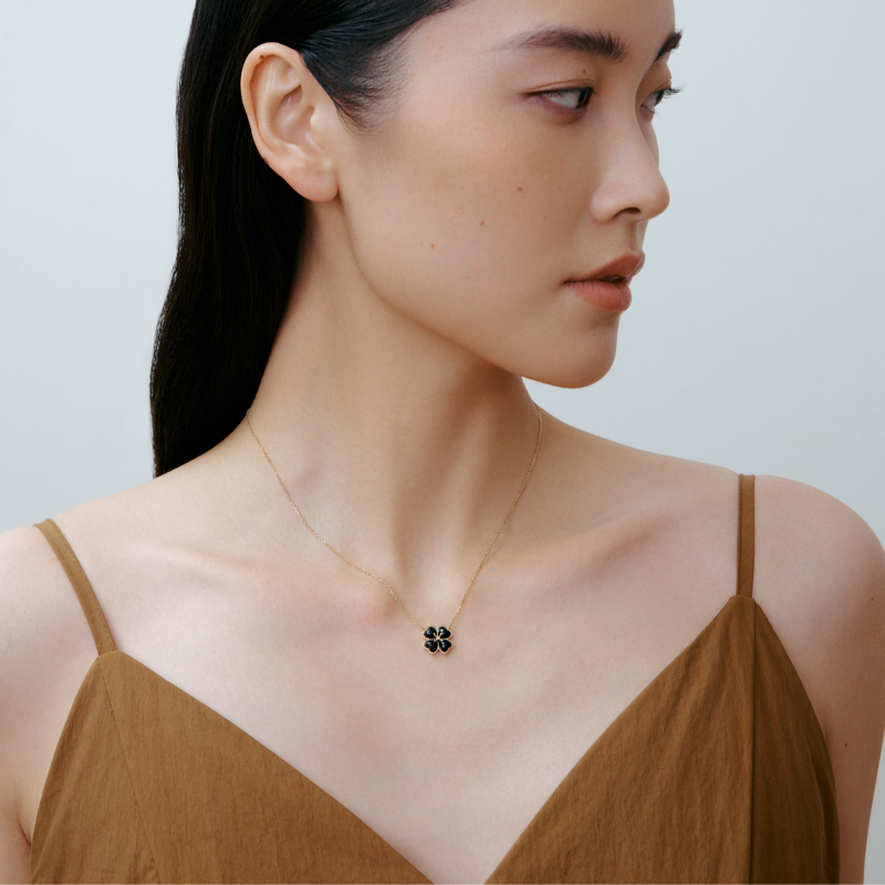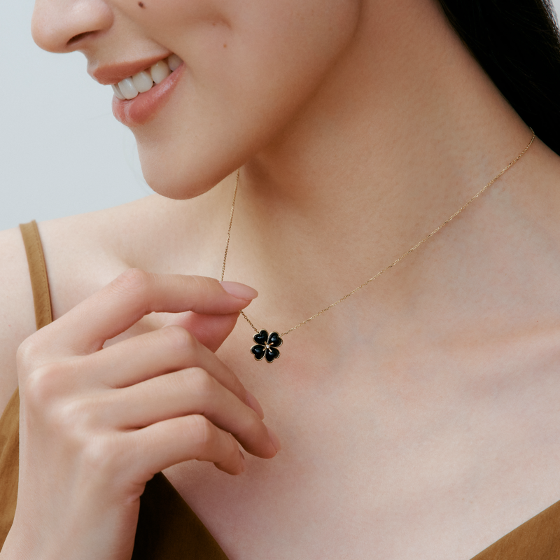 Fellala/翡拉拉「四叶草」925银饰项链黑色高贵优雅颈饰
