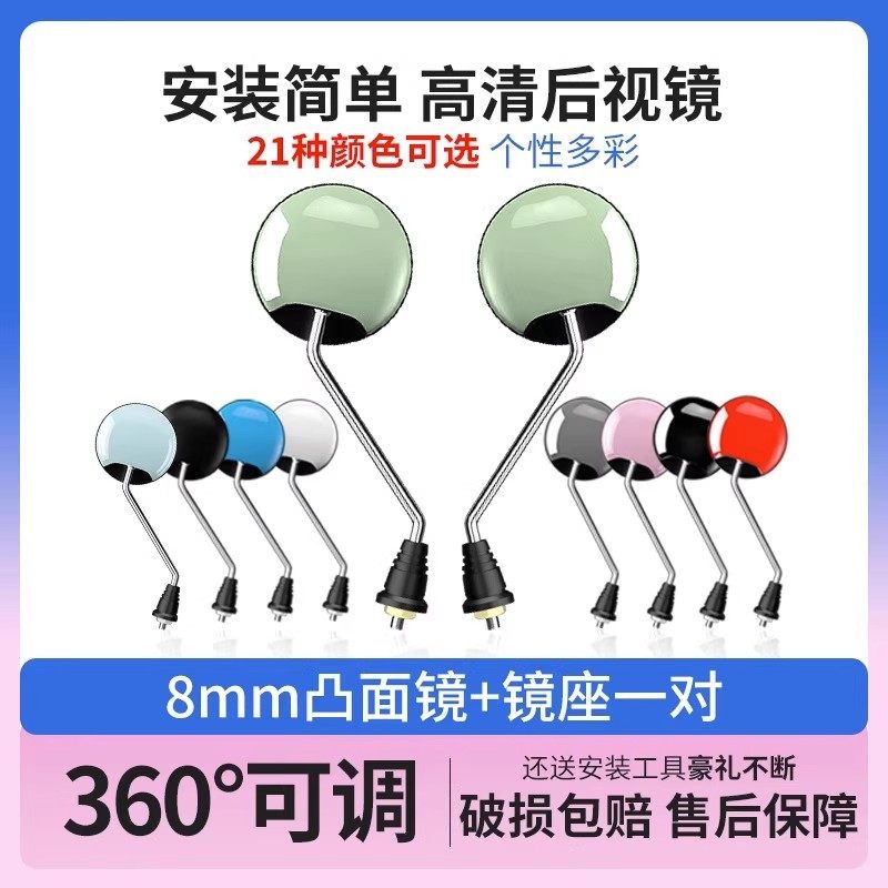 电动电瓶车后视镜自行车圆镜适用雅迪爱玛大视野倒车反光镜子通用