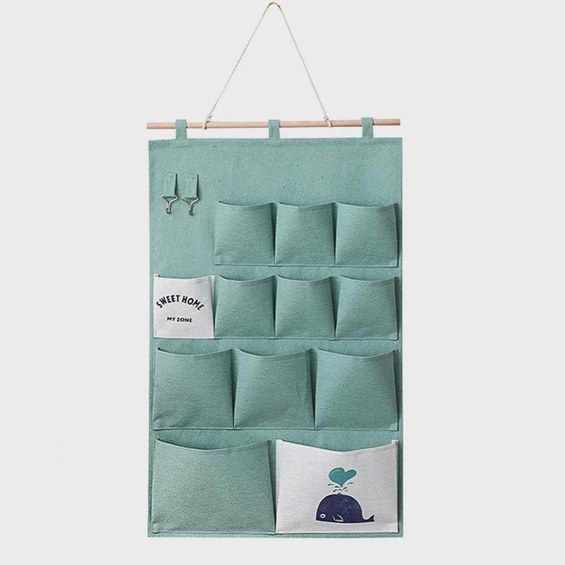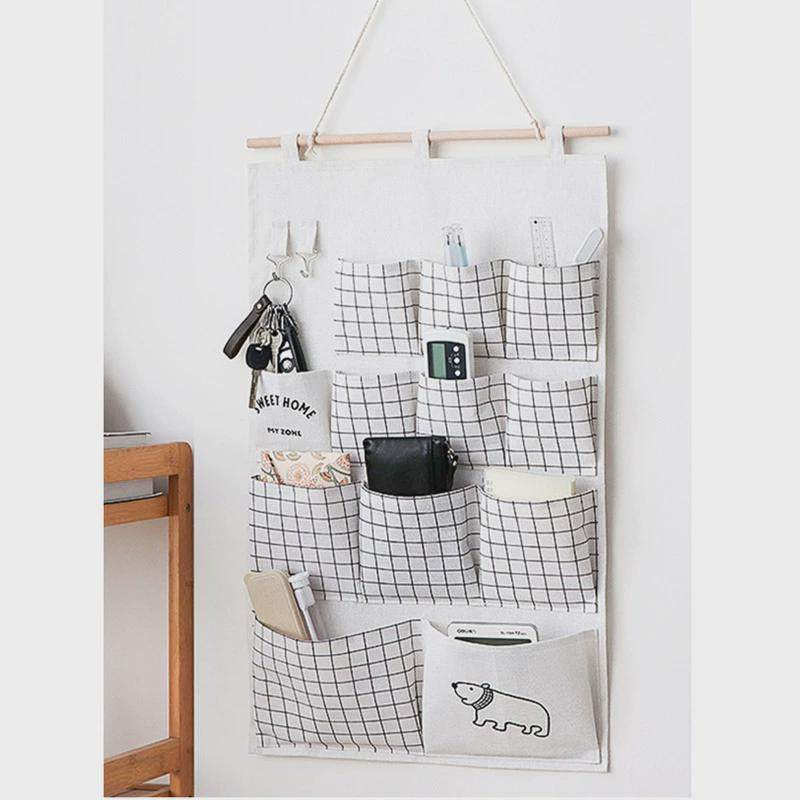 墙上门后钥匙棉麻布艺悬挂式宿舍床头壁挂收纳挂袋手机收纳袋
