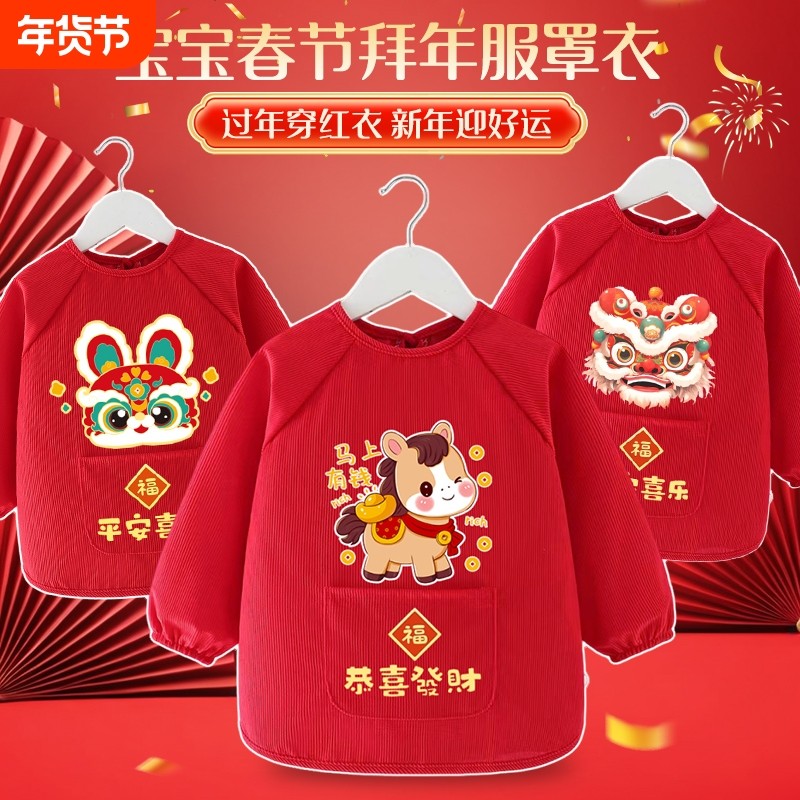 国风儿童罩衣男宝宝马年拜年服唐装外穿洋气女孩喜庆新年中式围裙
