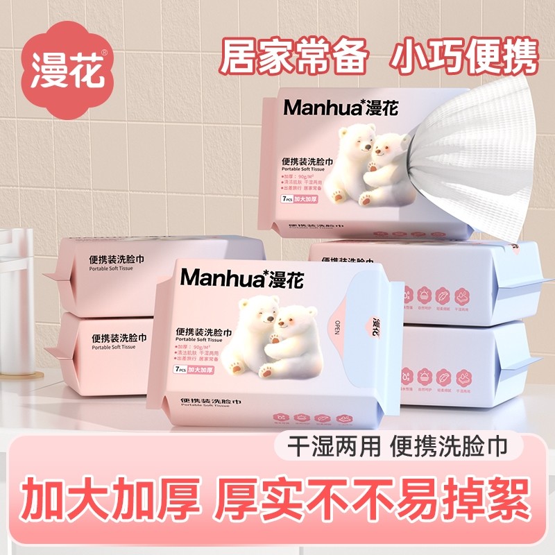 漫花洗脸巾抽取式干湿两用擦脸巾家用加厚一次性洁面巾棉柔旅行