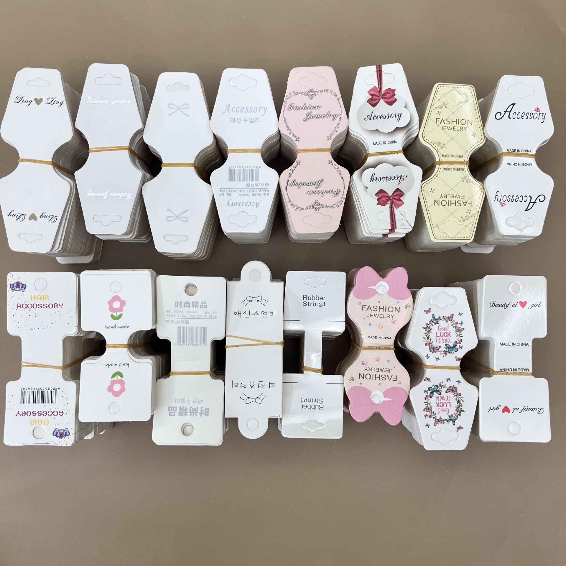100-200张大号皮筋发圈对折卡头头绳包装卡纸diy发绳项链吊牌卡片