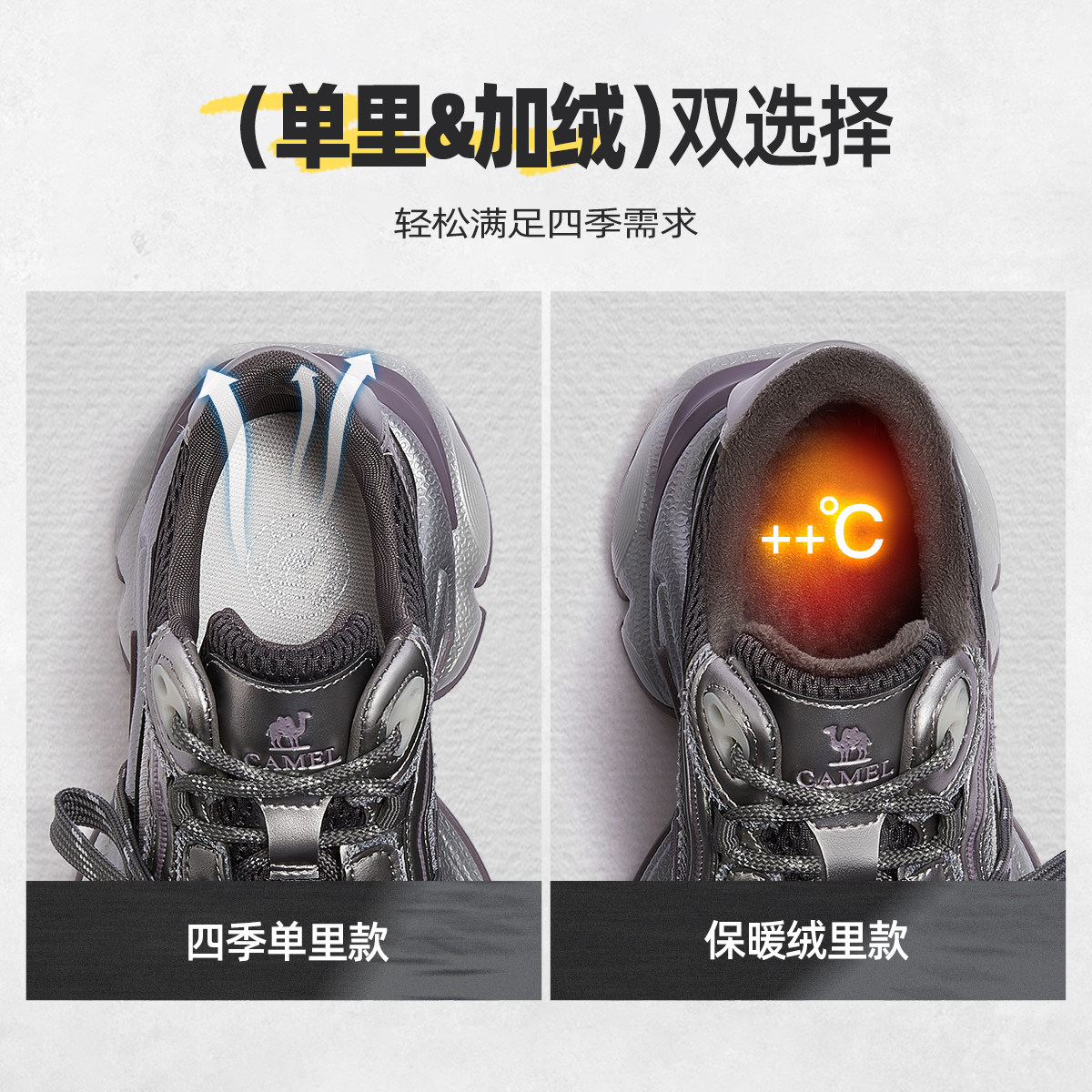 Camel骆驼老爹鞋银月女鞋秋冬新款复古运动鞋加绒厚底增高休闲鞋