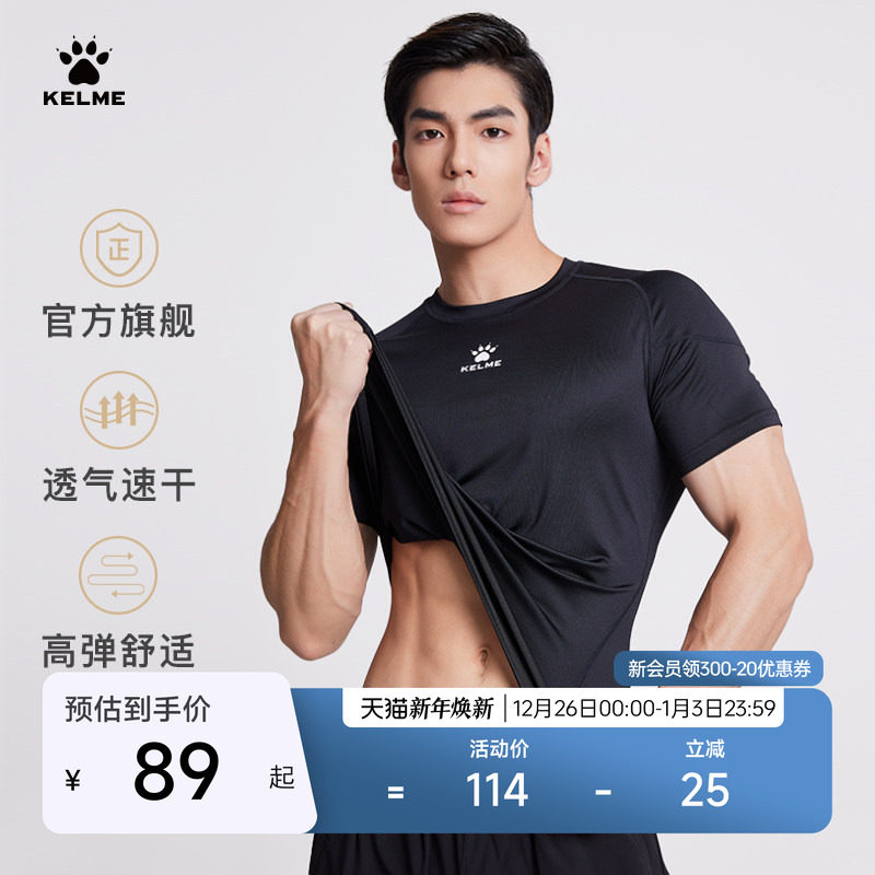 卡尔美透气短袖健身衣男紧身高弹速干背心训练服跑步篮球运动T恤