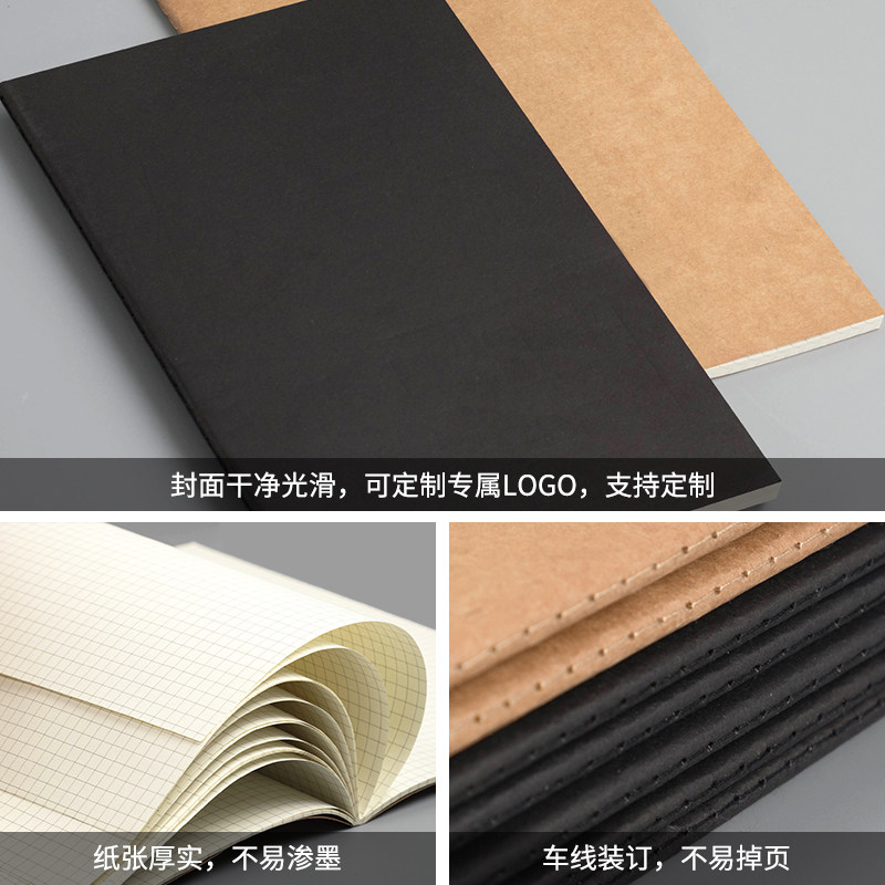 牛皮纸笔记本子加厚简约A5写字本车线本文具软面抄大学生文艺精致b5大号记事本16k开横线网格练习本定制logo