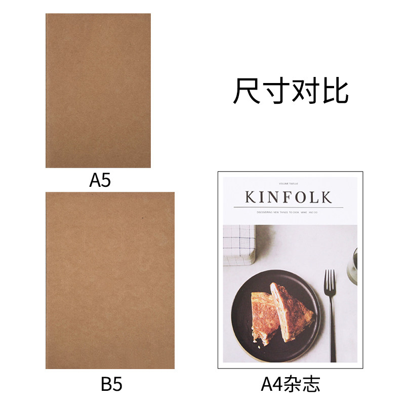 复古牛皮纸笔记本超厚空白本子加厚白纸本草稿本学习可平摊高颜值本记事本日记本a4a5小方格写作本大学生初中