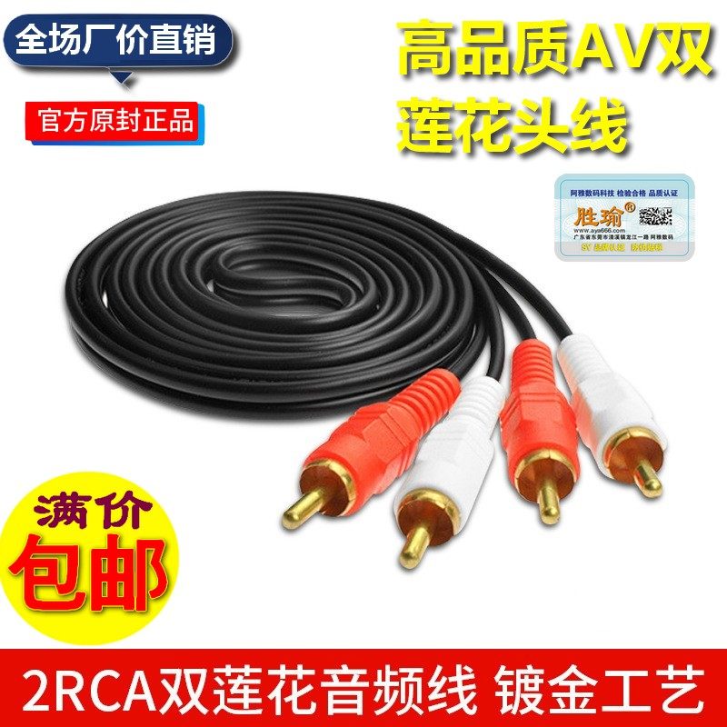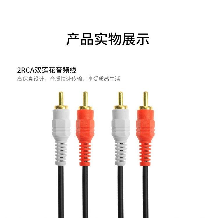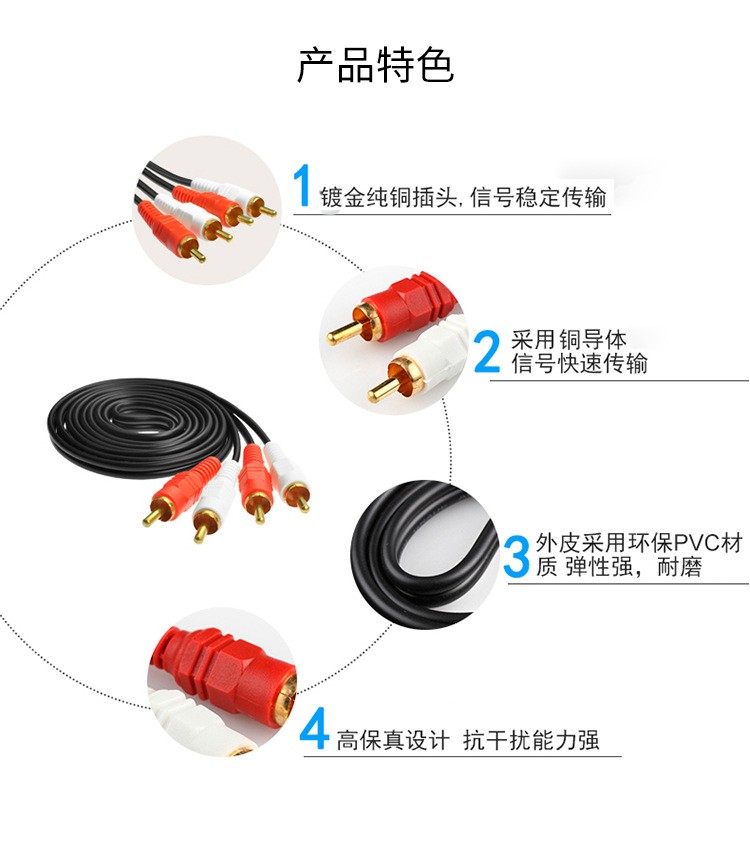 双莲花头音频线二对二2rca红白通用AV信号线音响DVD专用连接线