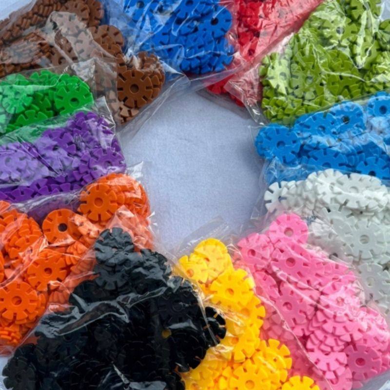 加厚3.3厘米雪花片100片单色家用儿童塑料玩具幼儿园黑白桌面积木