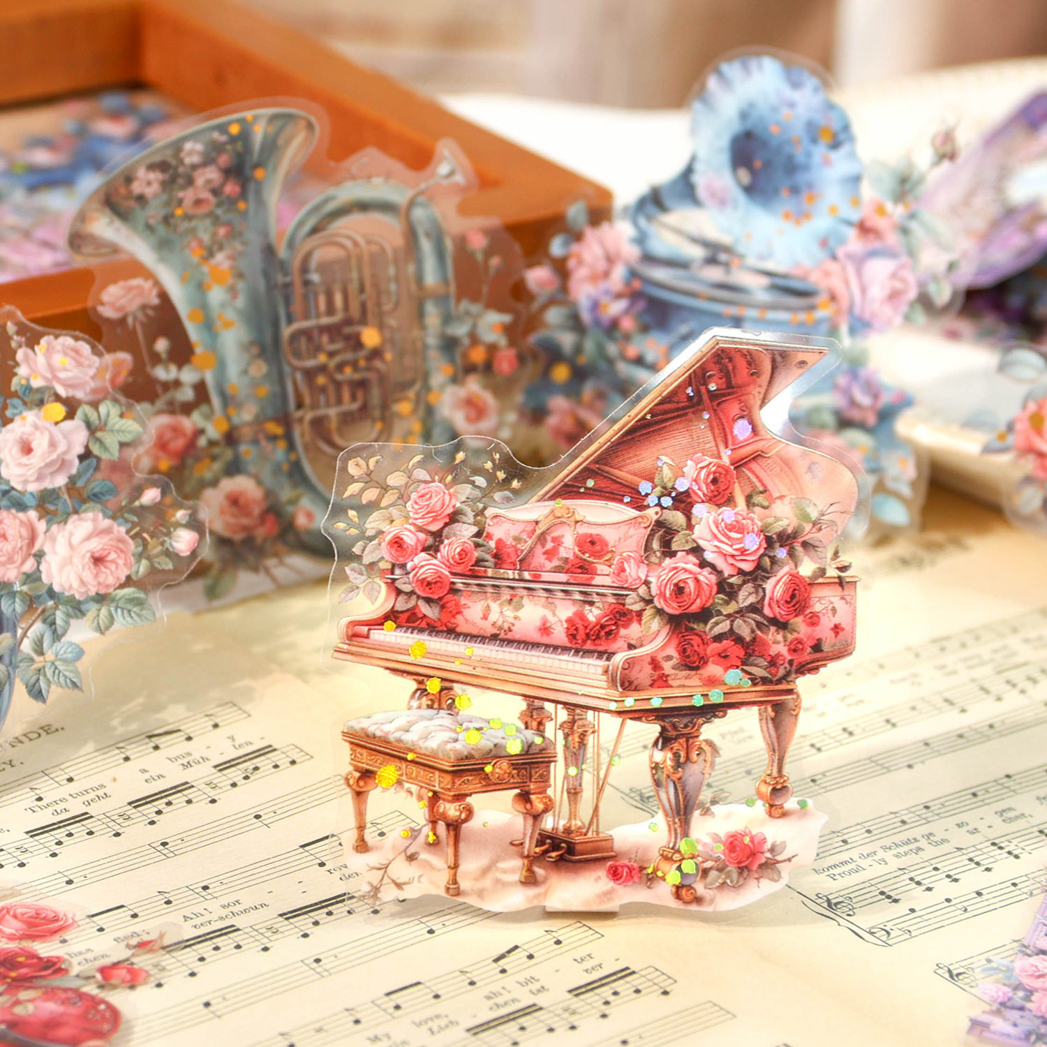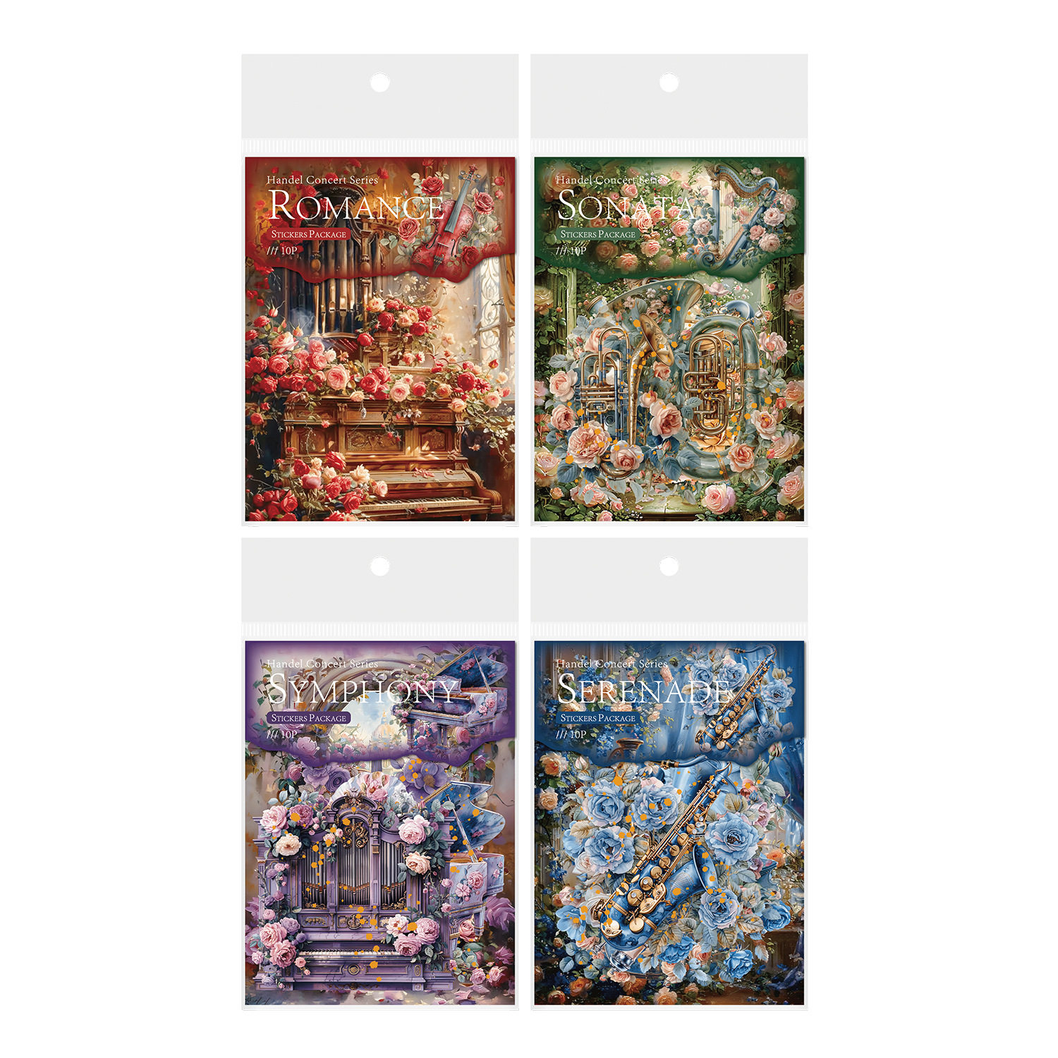 亨德尔乐宴系列贴纸包10张入 文艺复古花卉乐器手帐装饰打底背景