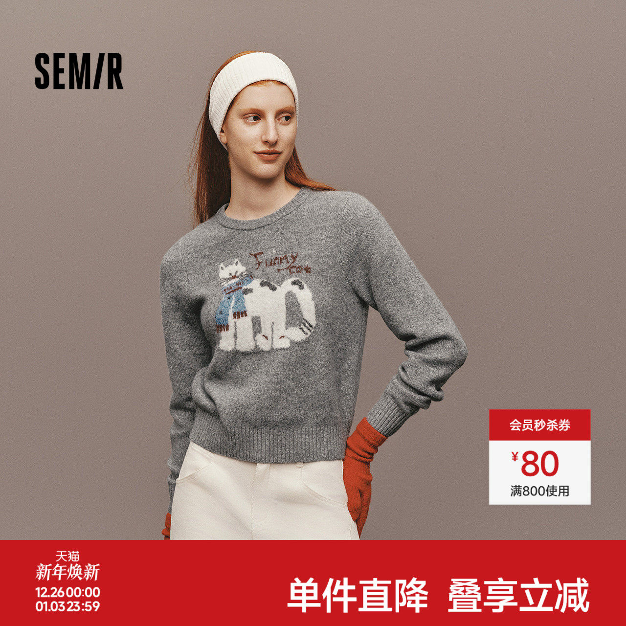 森马毛衣女冬季设计感萌宠提花软糯上衣2025新款可爱趣味小众毛衫