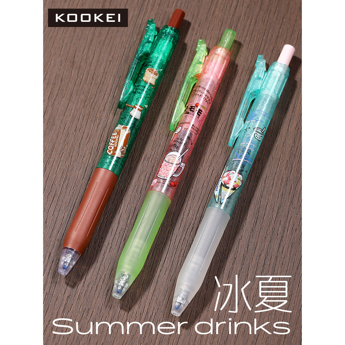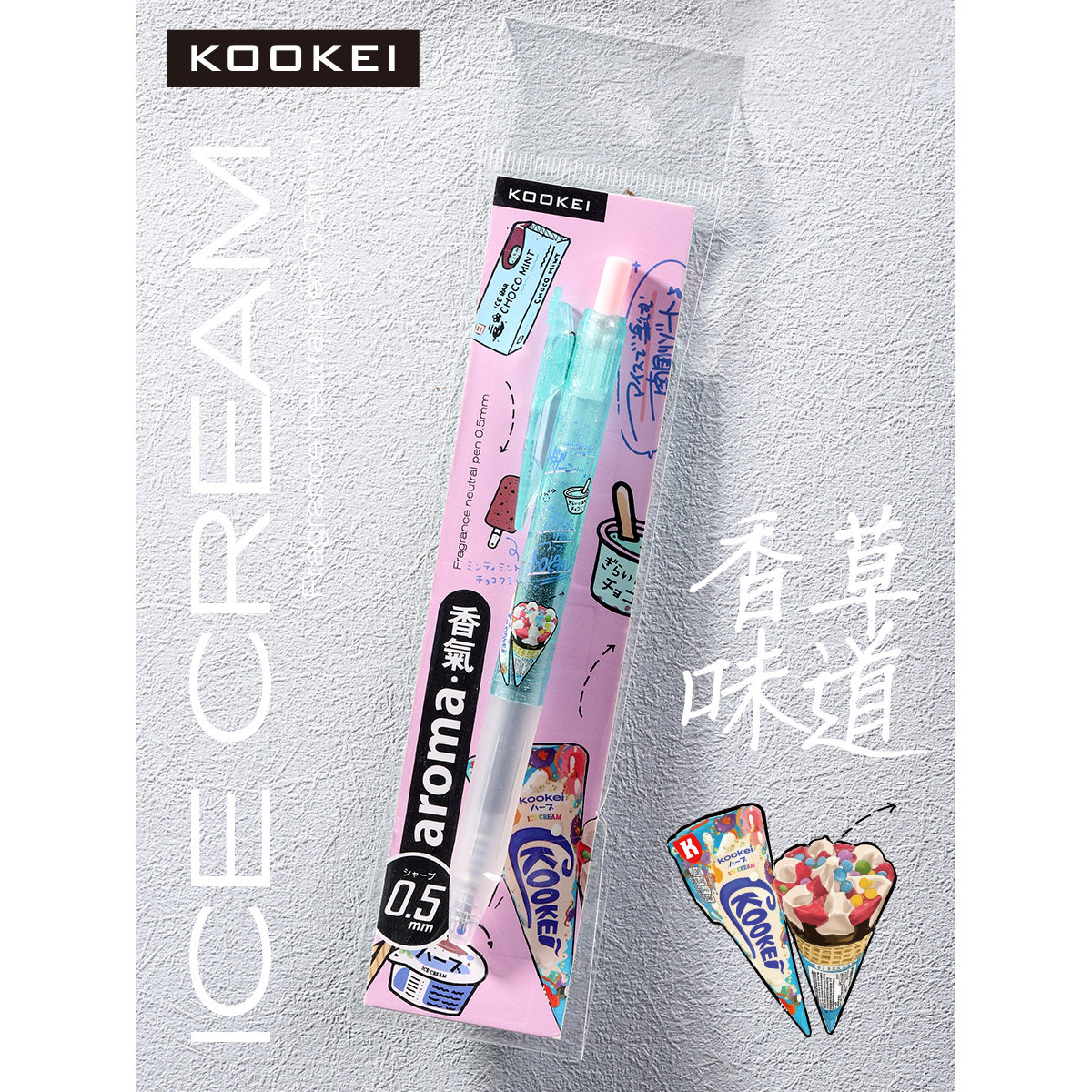 新品kookei冰室限定香味中性笔冰淇淋咖啡奶茶按动笔黑色0.5学生用速干刷题笔夏日清爽办公签字中考斑水笔