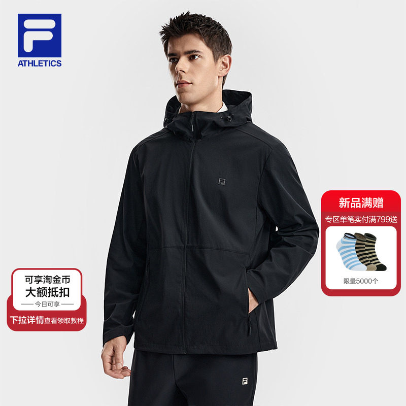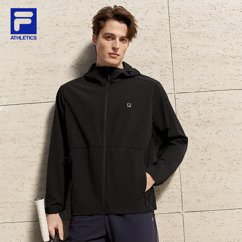 FILA斐乐官方男梭织外套26春新户外健身跑步运动连帽防晒速干上衣