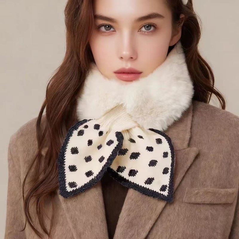 围巾女秋冬季2025新款可爱百搭保暖加绒交叉毛领护颈毛绒围脖波点